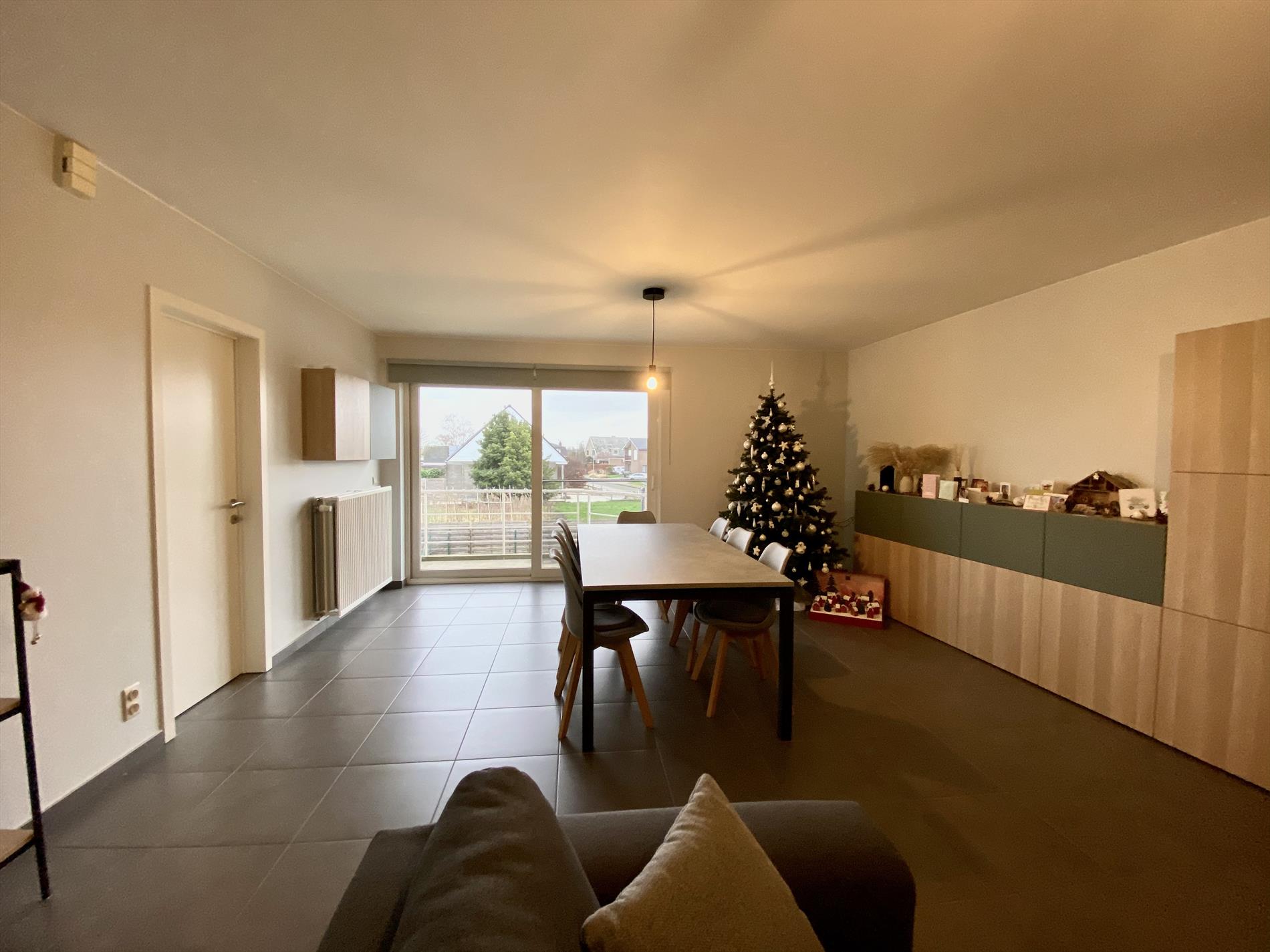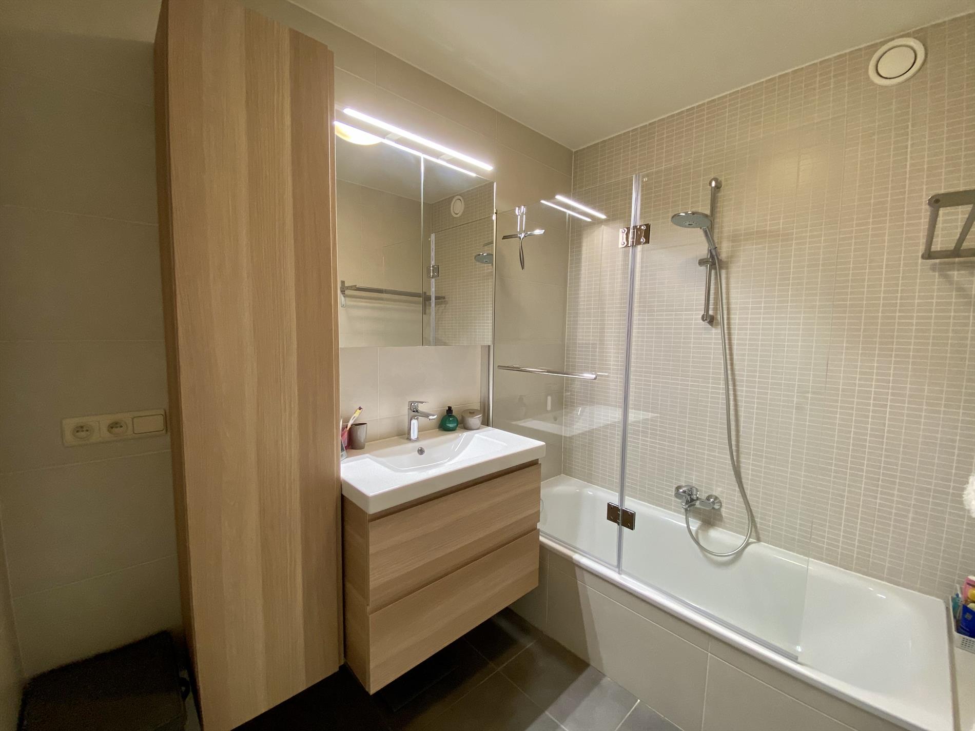 Dit appartement gelegen op de eerste verdieping heeft een inkomhal met gastentoilet, grote living met aangrenzend terras, 2 slaapkamers, volledig ingerichte keuken met alle toestellen incl.vaatwasser, ingerichte badkamer met lavabomeubel met spiegelopzet en ligbad, mogelijkheid om te douchen in het bad met glazen scherm. Er is tevens een berging waar wasmachine en droogkast kunnen staan.