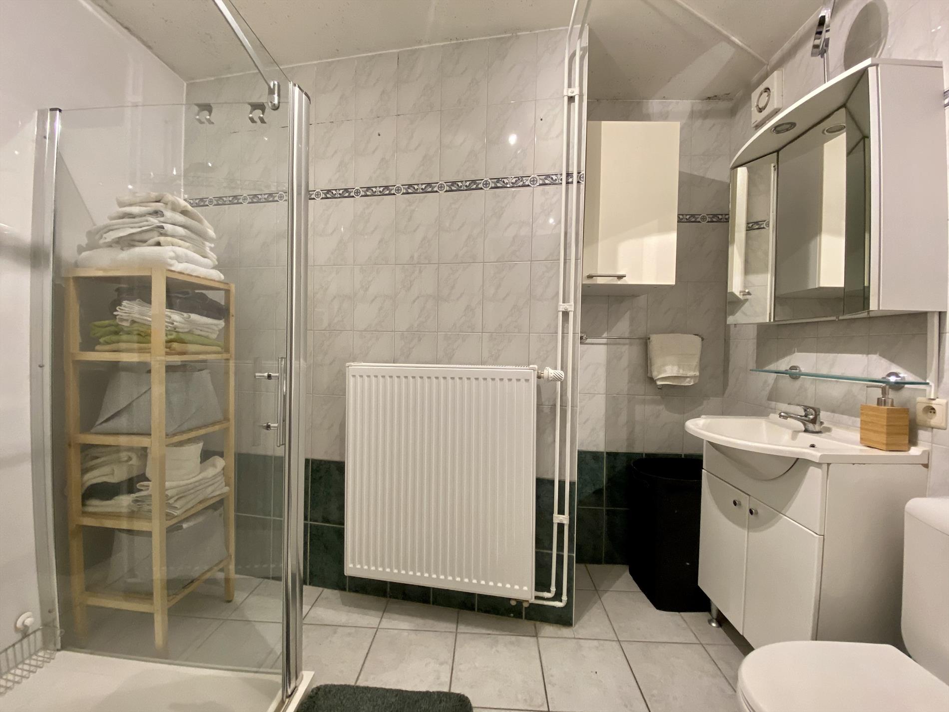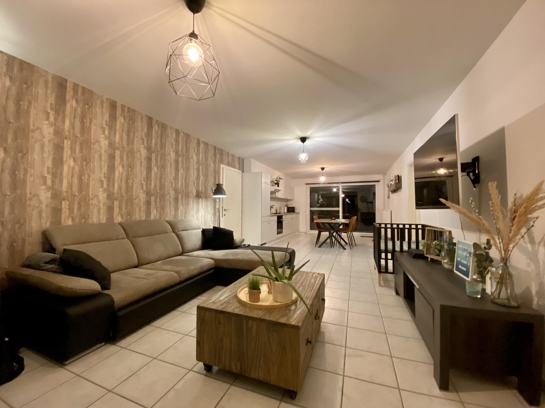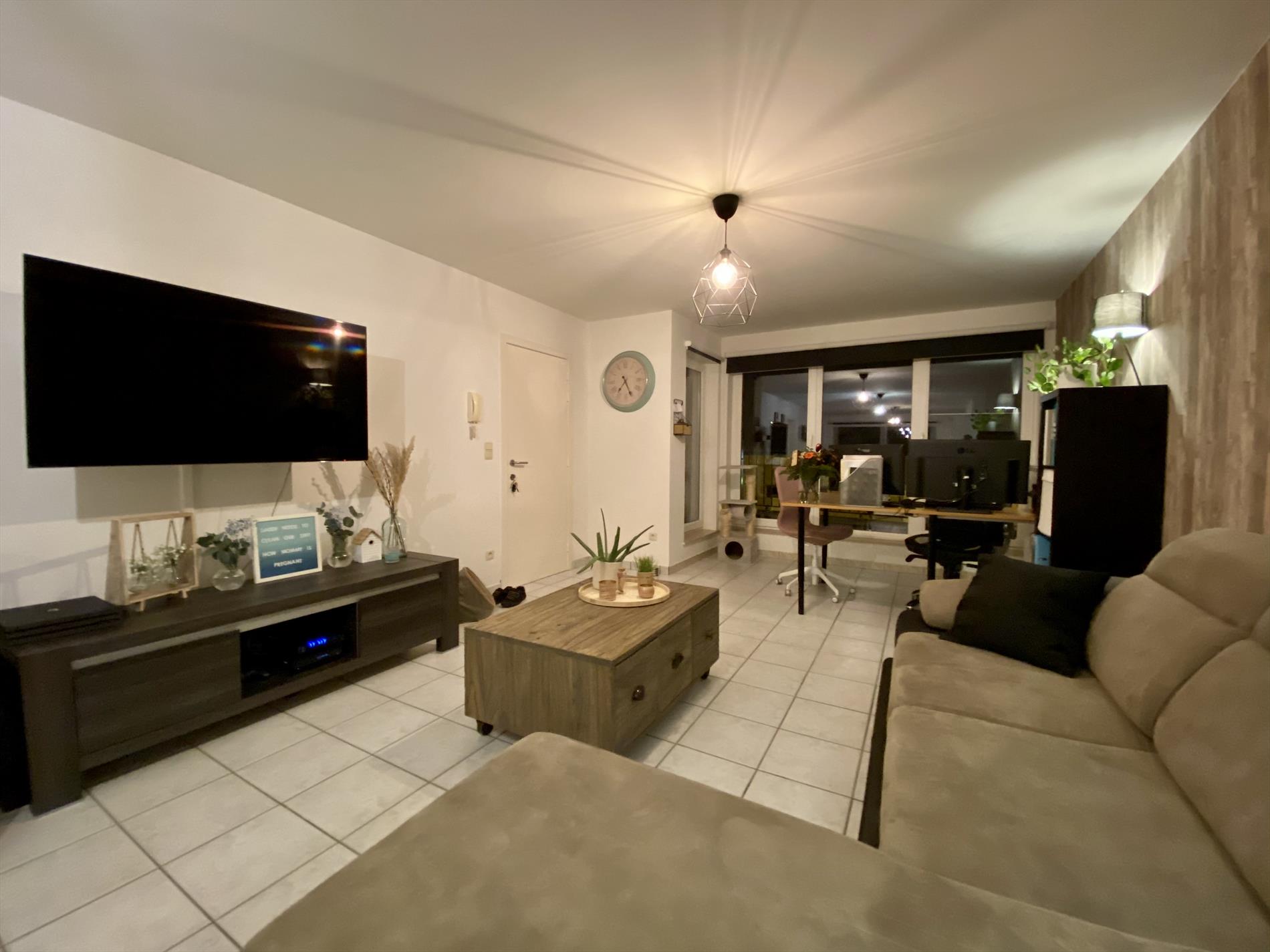 Dit mooie appartement heeft als indeling: een ruime woonkamer met veel lichtinval die verbonden is met de keuken (met fornuis, oven, ijskast en dampkap). Verder in het appartement zijn 2 ruime slaapkamers en een badkamer met alle comfort (douche, lavabo, en toilet) en een berging. Via de woonkamer is er toegang tot het gezellige terras.