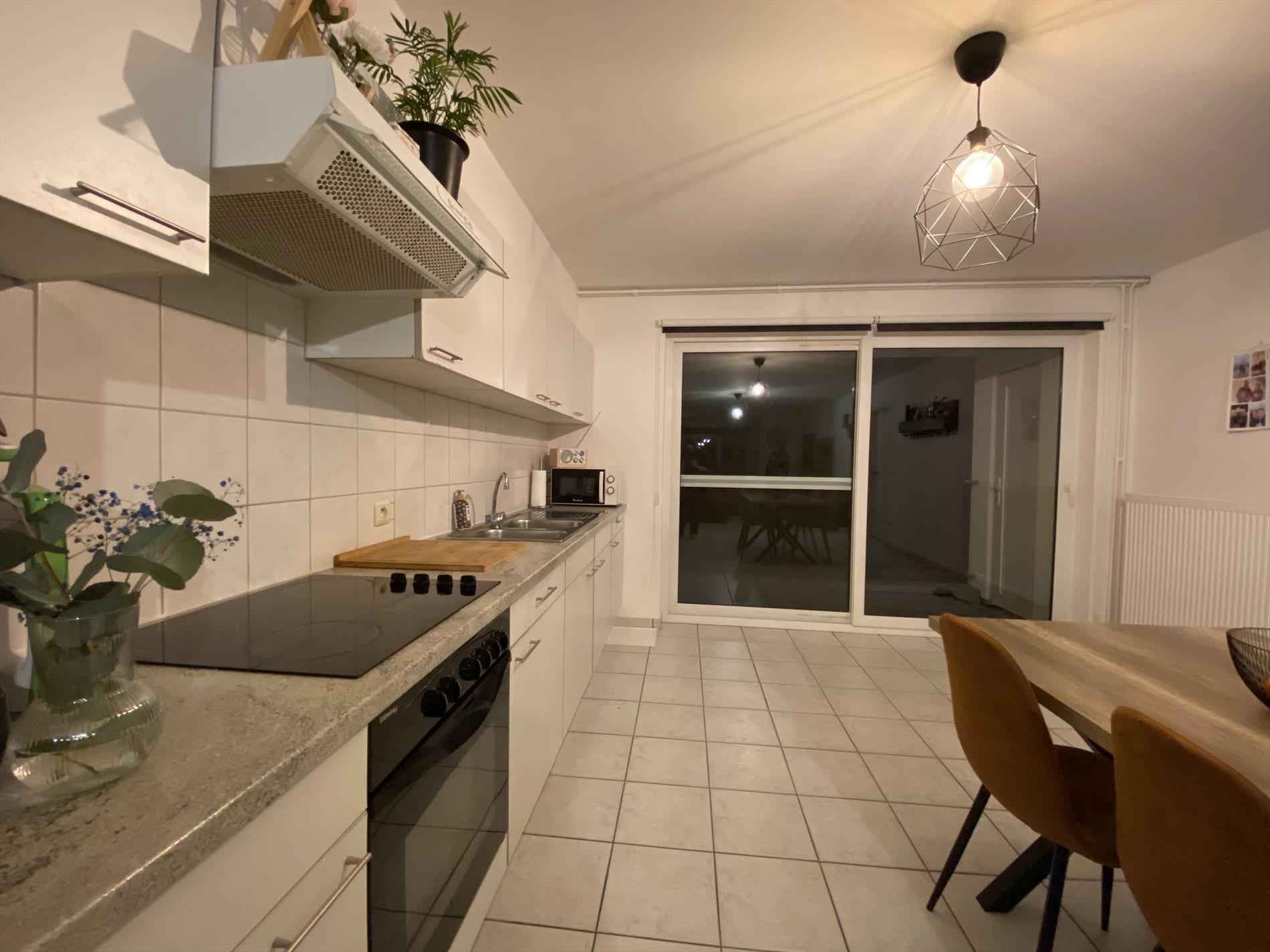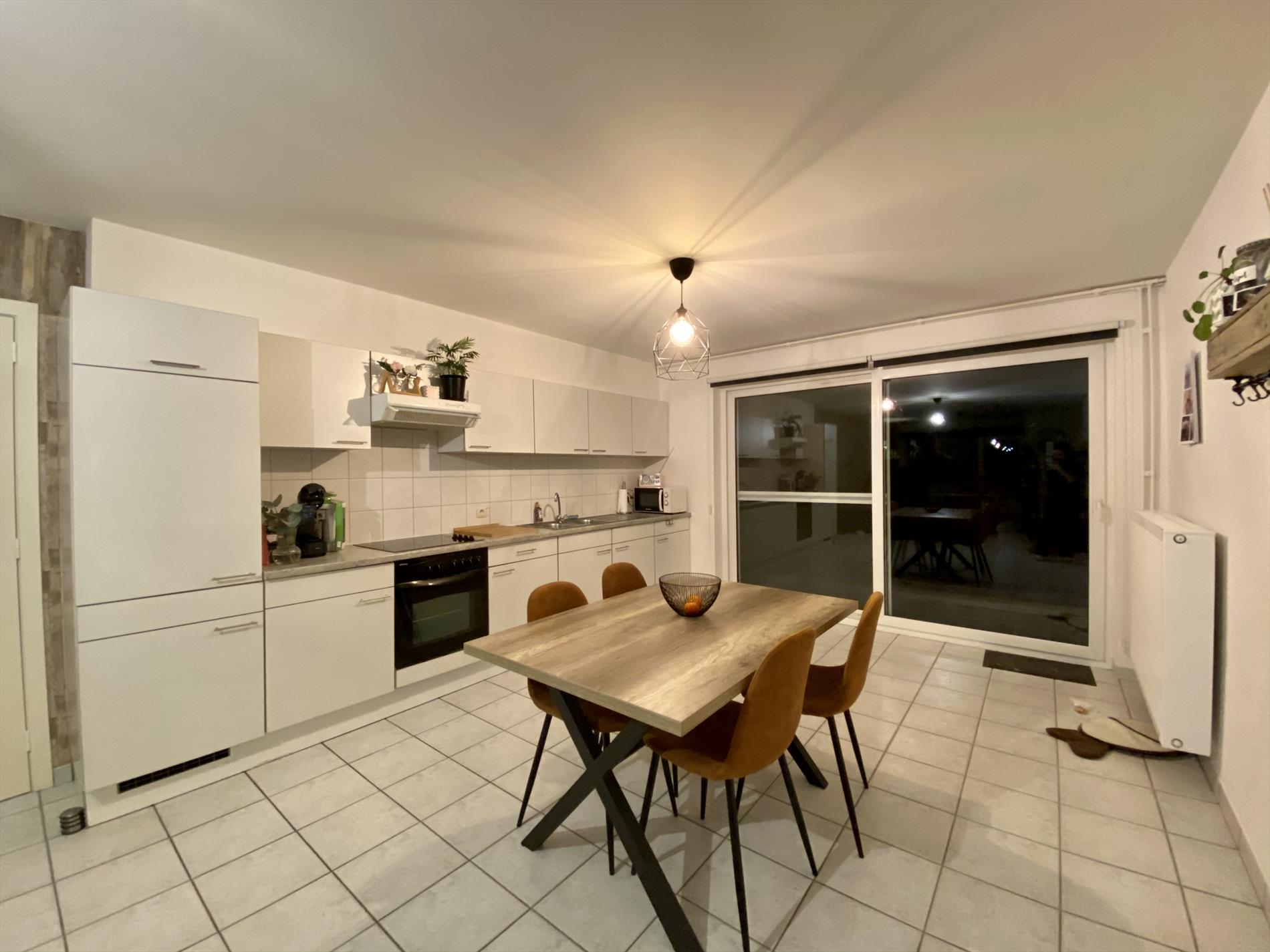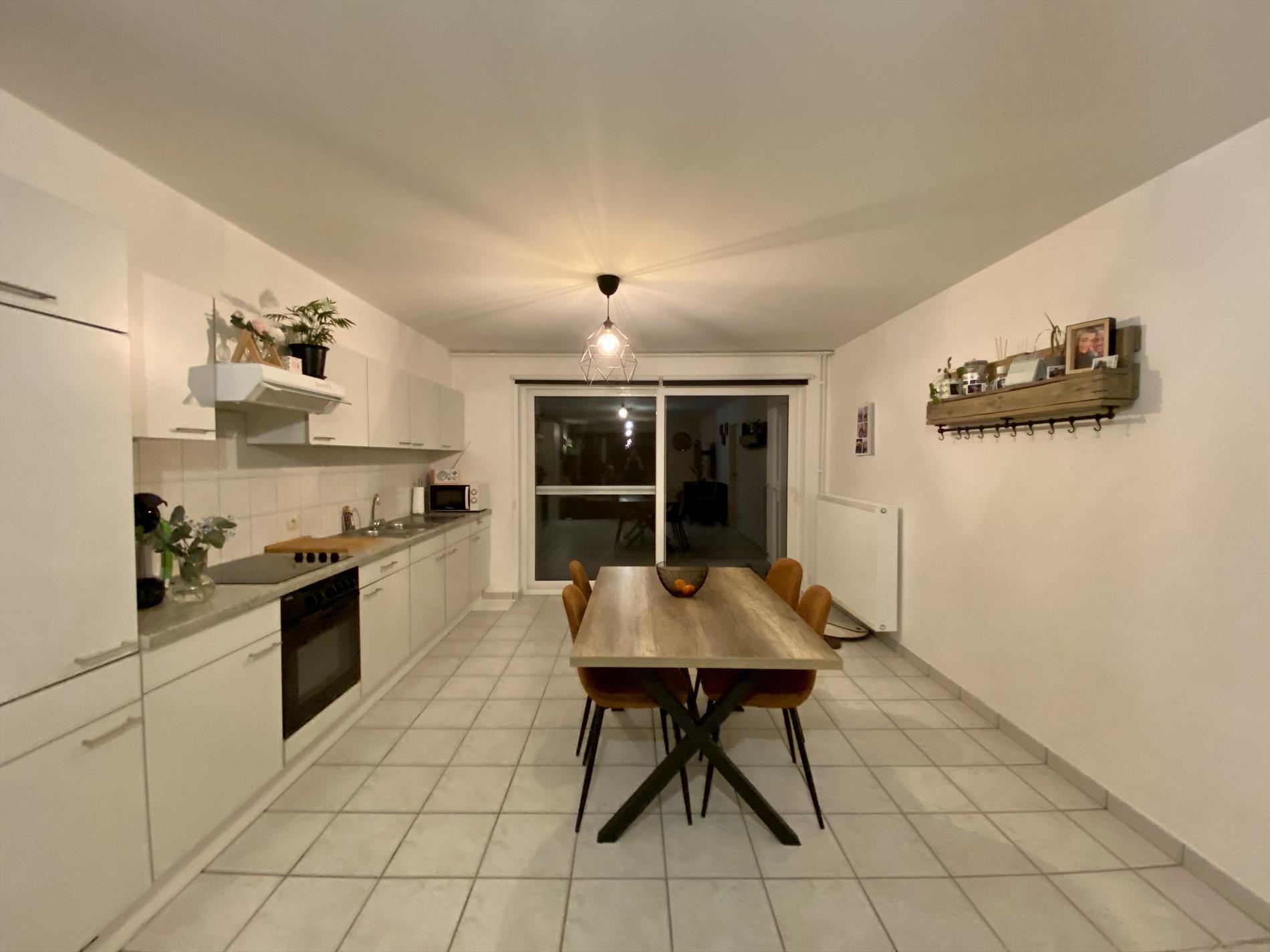Dit mooie appartement heeft als indeling: een ruime woonkamer met veel lichtinval die verbonden is met de keuken (met fornuis, oven, ijskast en dampkap). Verder in het appartement zijn 2 ruime slaapkamers en een badkamer met alle comfort (douche, lavabo, en toilet) en een berging. Via de woonkamer is er toegang tot het gezellige terras.