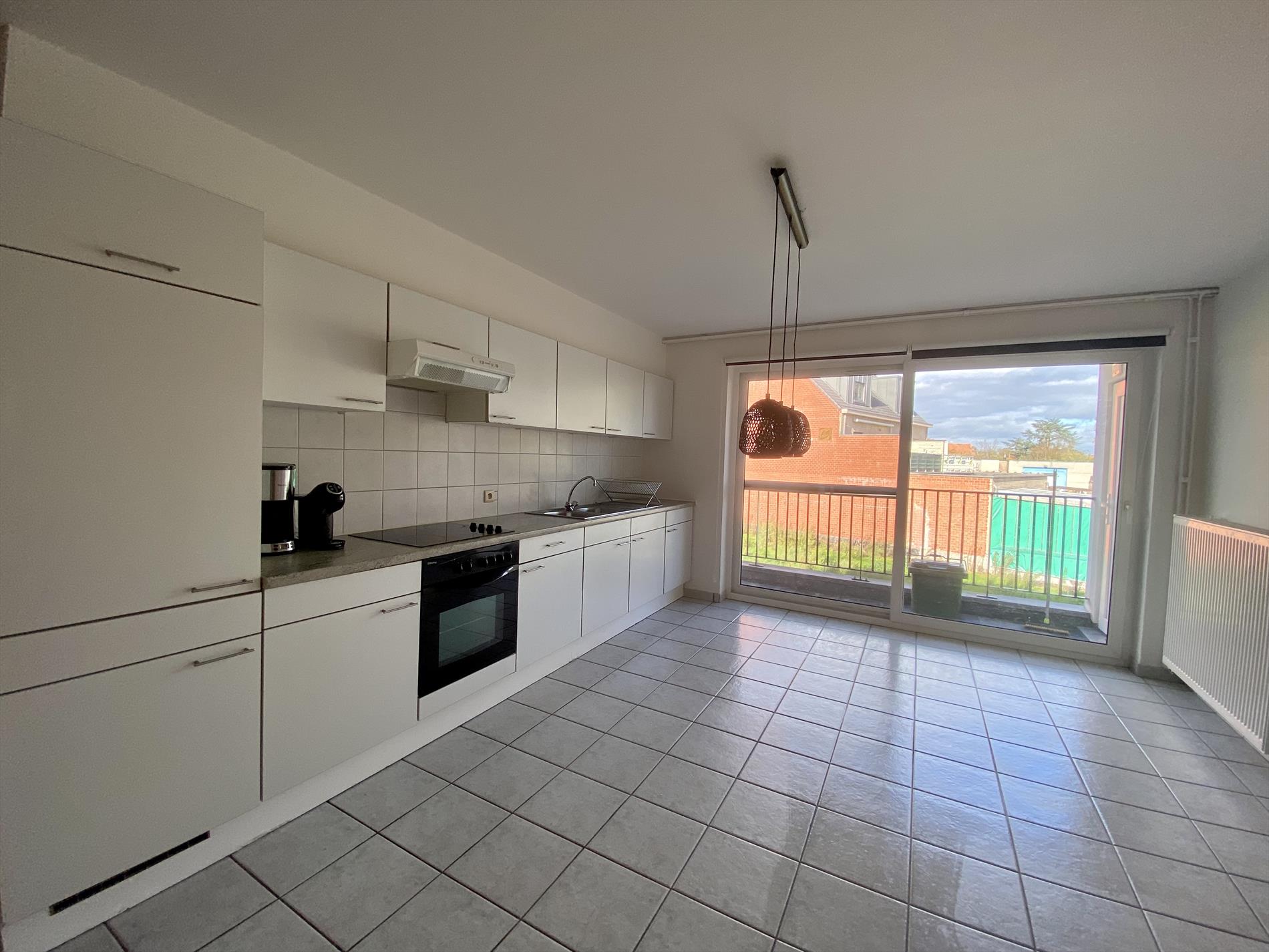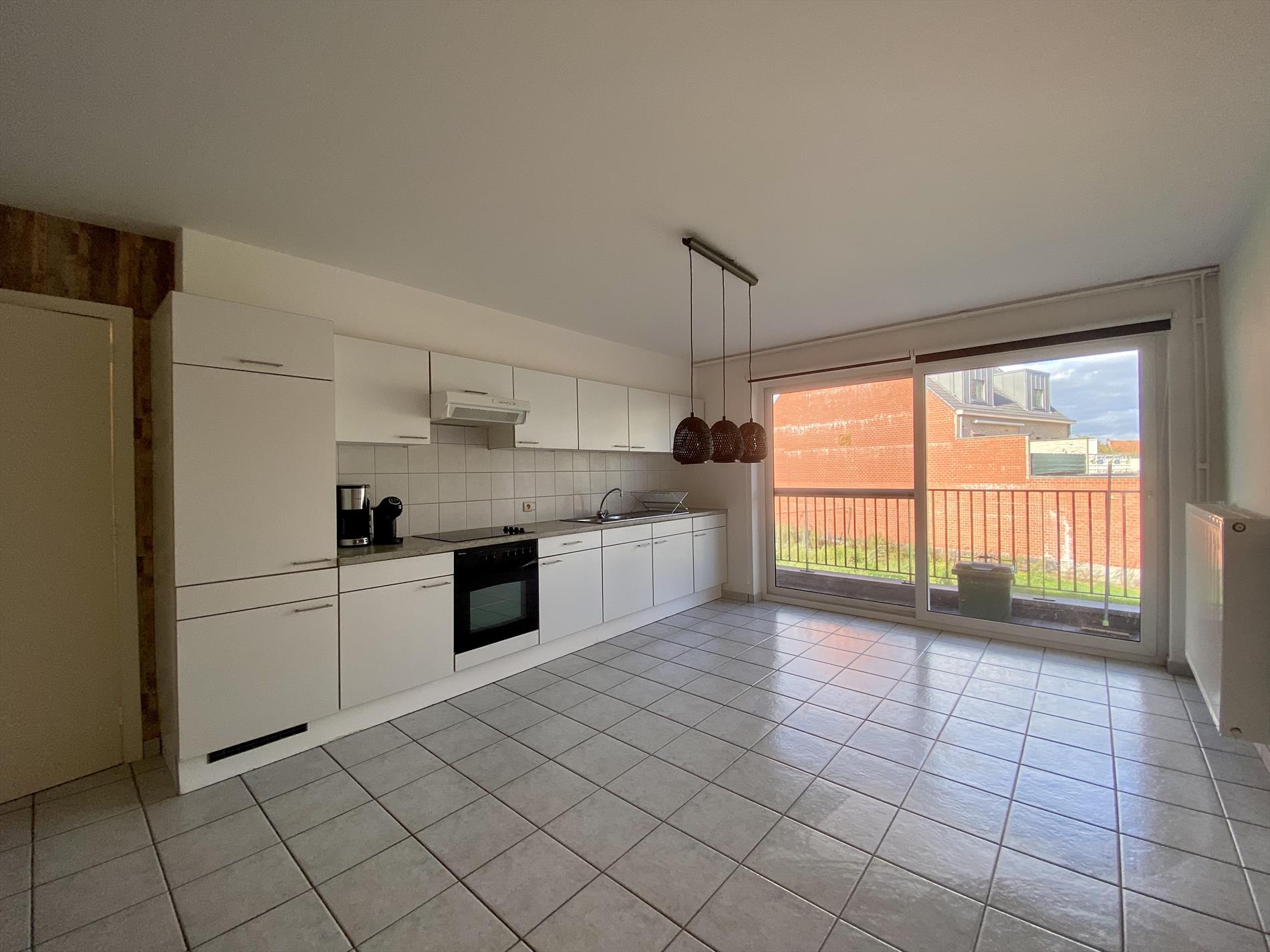 Dit mooie appartement heeft als indeling: een ruime woonkamer met veel lichtinval die verbonden is met de keuken (met fornuis, oven, ijskast en dampkap). Verder in het appartement zijn 2 ruime slaapkamers en een badkamer met alle comfort (douche, lavabo, en toilet) en een berging. Via de woonkamer is er toegang tot het gezellige terras.