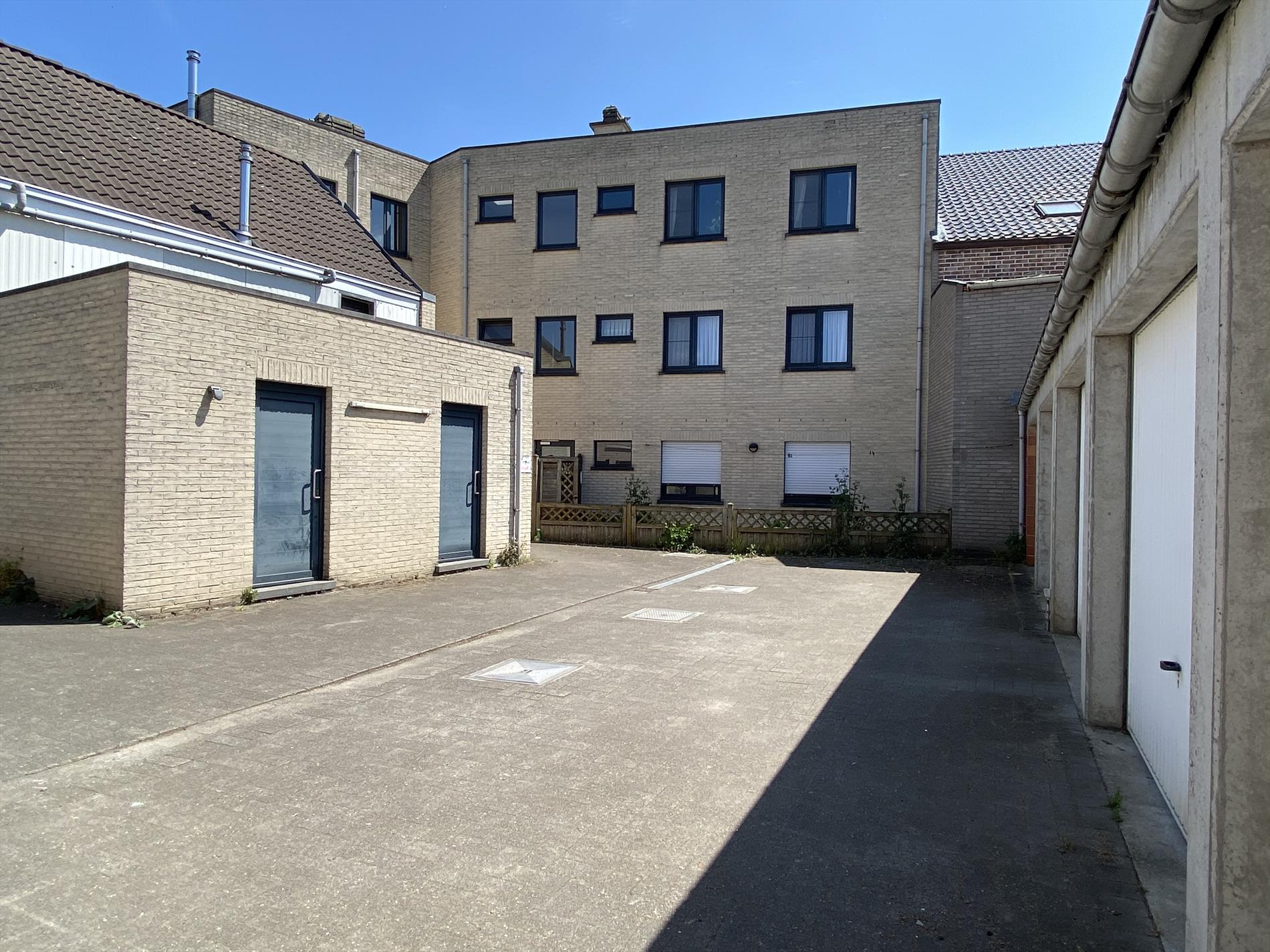 Er is een gemeenschappelijke berging voor vuilnis, PMD en papier en karton op de koer, alsook een gezamelijke fietsenberging.