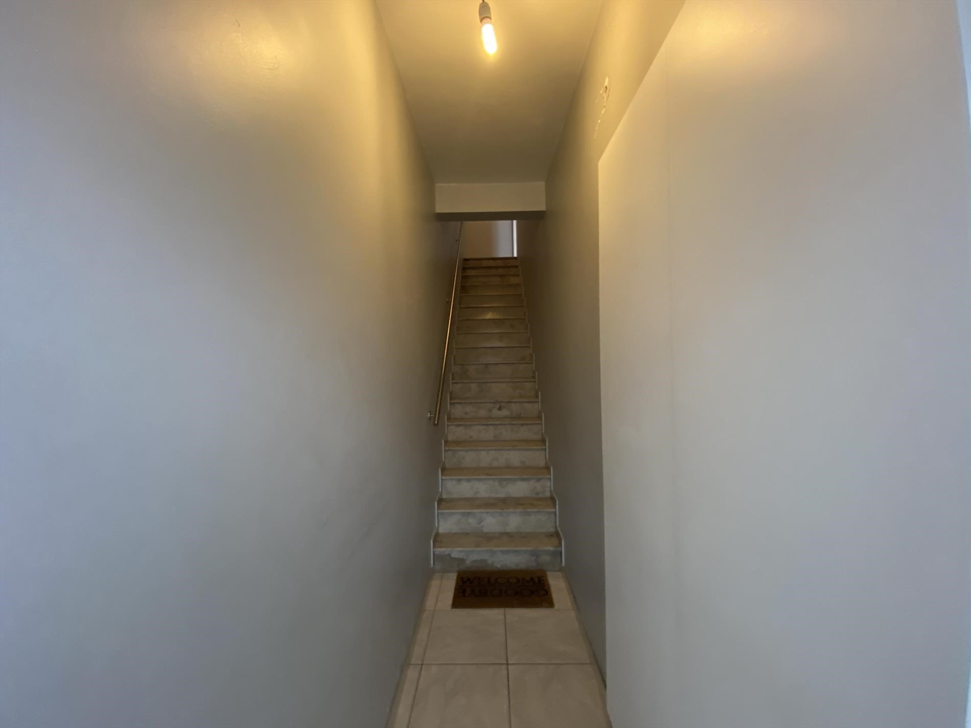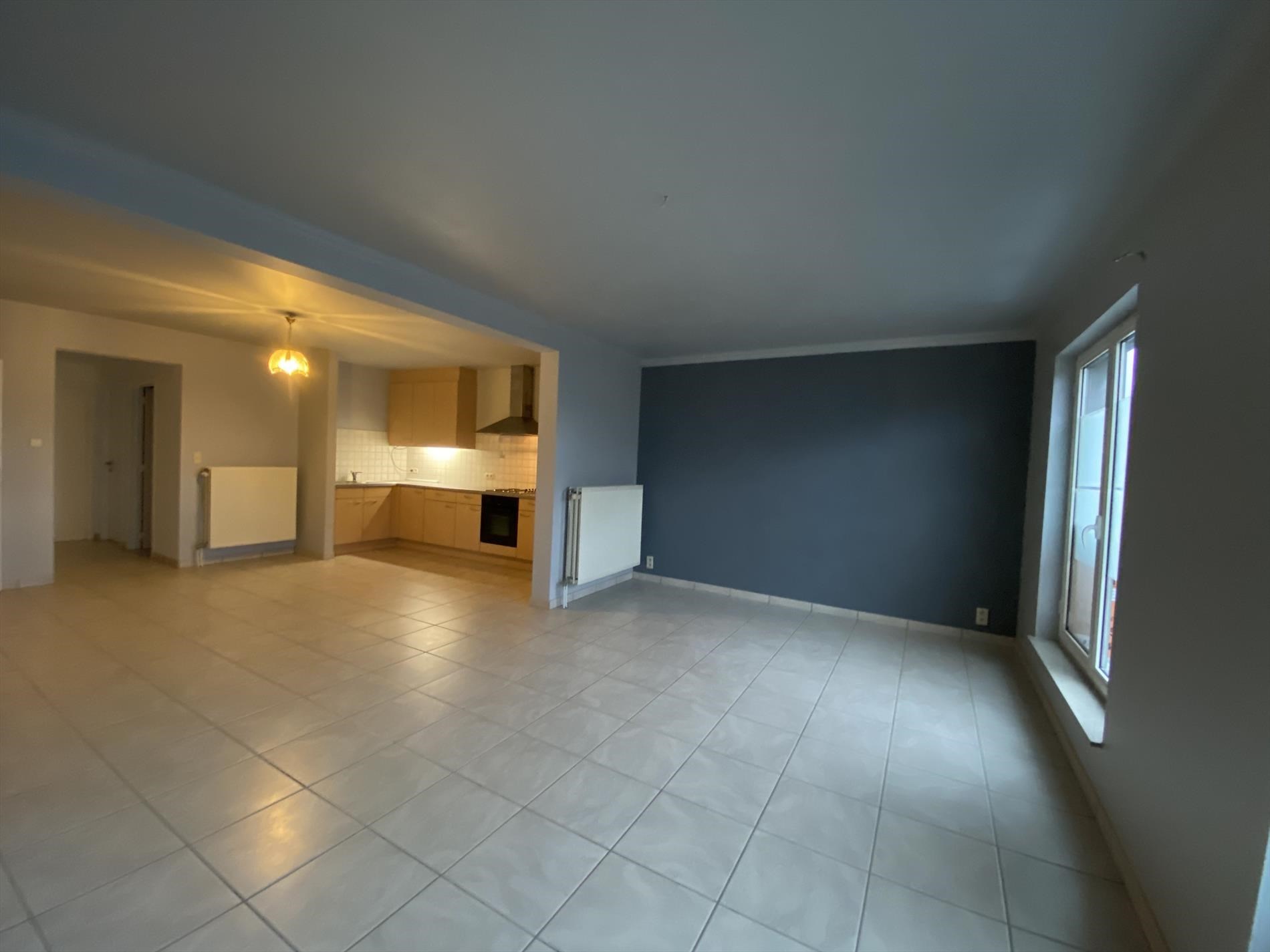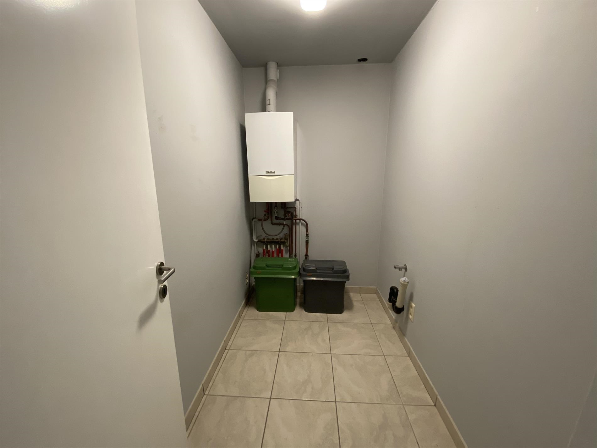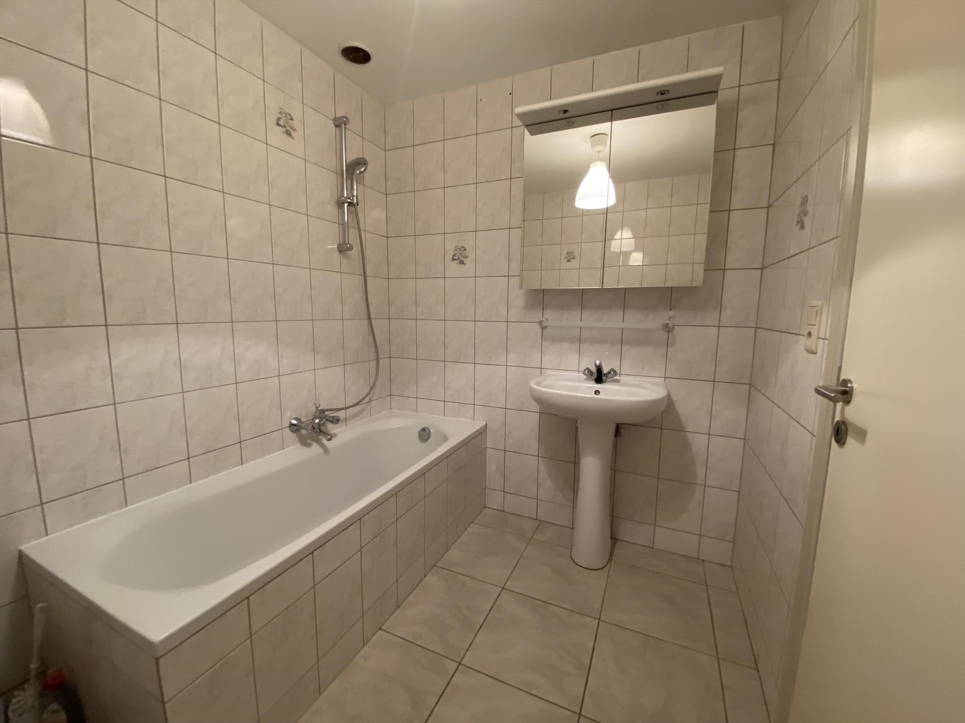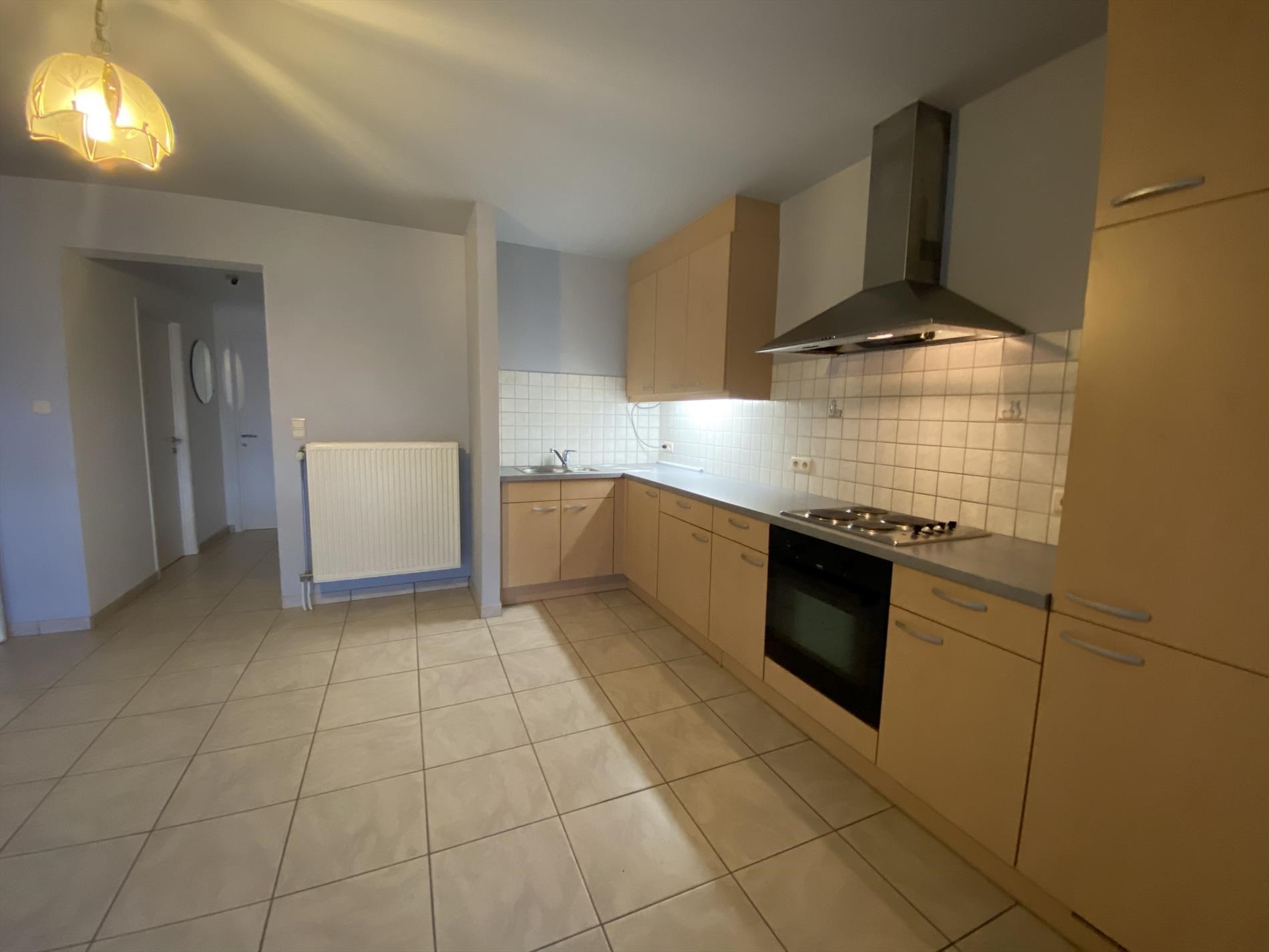 Een inkomhal met trap naar boven die toegang geeft tot de ruime woonkamer, deze sluit aan op de volledig ingerichte keuken met fornuis, dampkap, oven en ijskast. Verder beschikt het appartement over 2 slaapkamers, een bergruimte en een badkamer met ligbad/douche, meubel met wastafel en toilet.