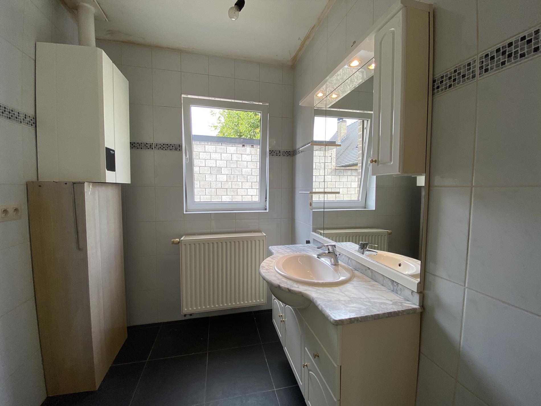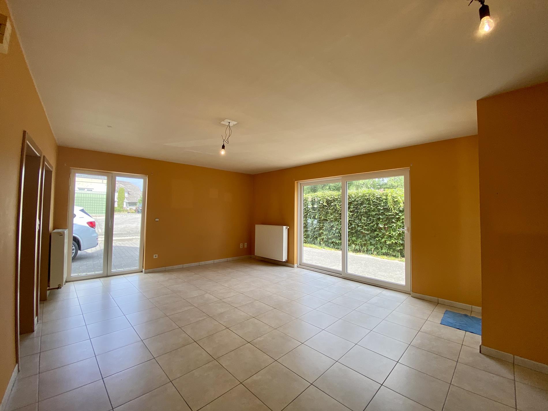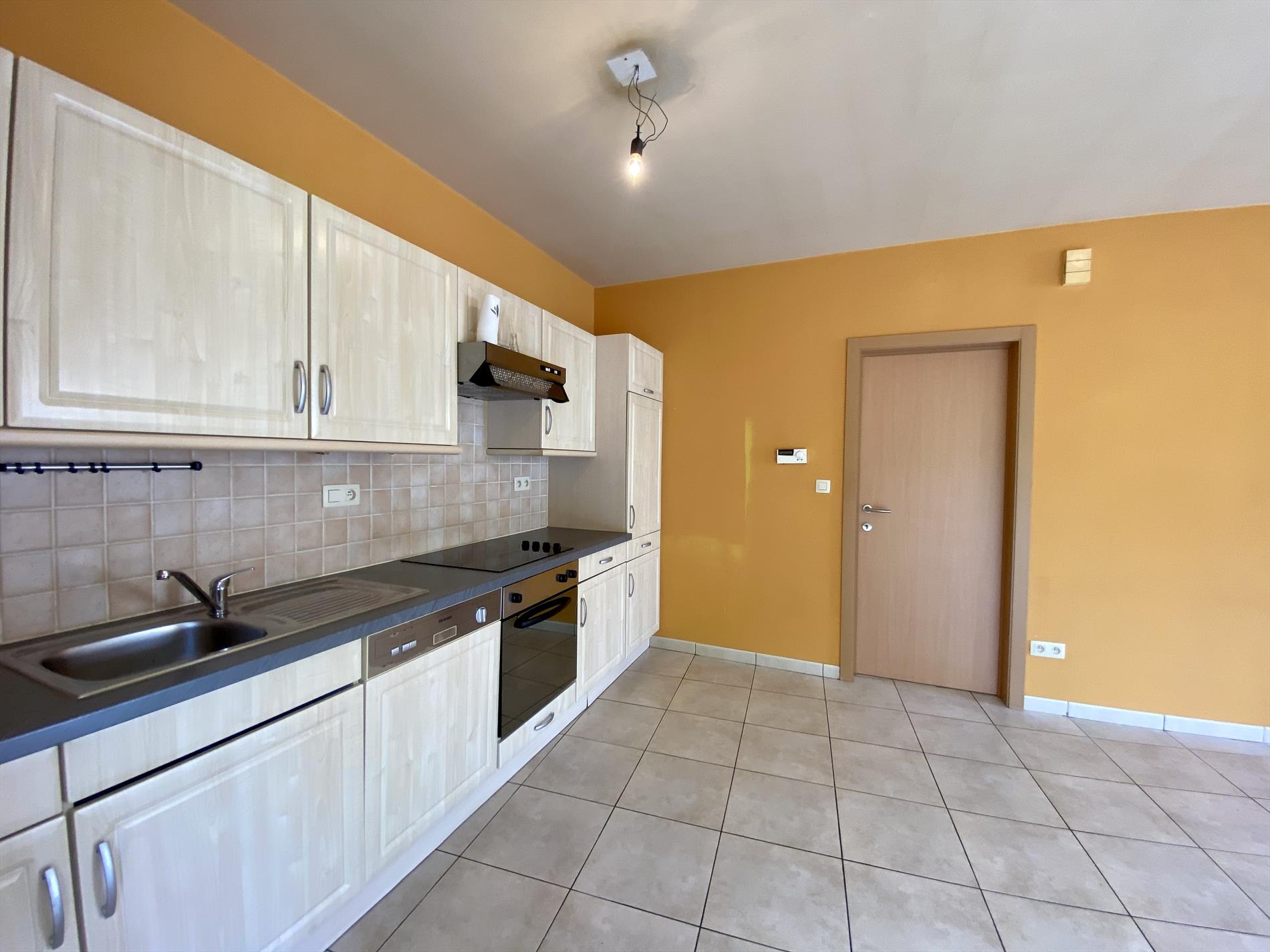 De indeling van dit gelijkvloers-appartement is als volgt: ruime living met tegelvloer die aansluit op de ingebouwde keukenblok met fornuis, oven, ijskast, dampkap en vaatwasser. Verder beschikt de woning oven een badkamer met alle comfort (douche, lavabo en toilet) en 2 slaapkamers.