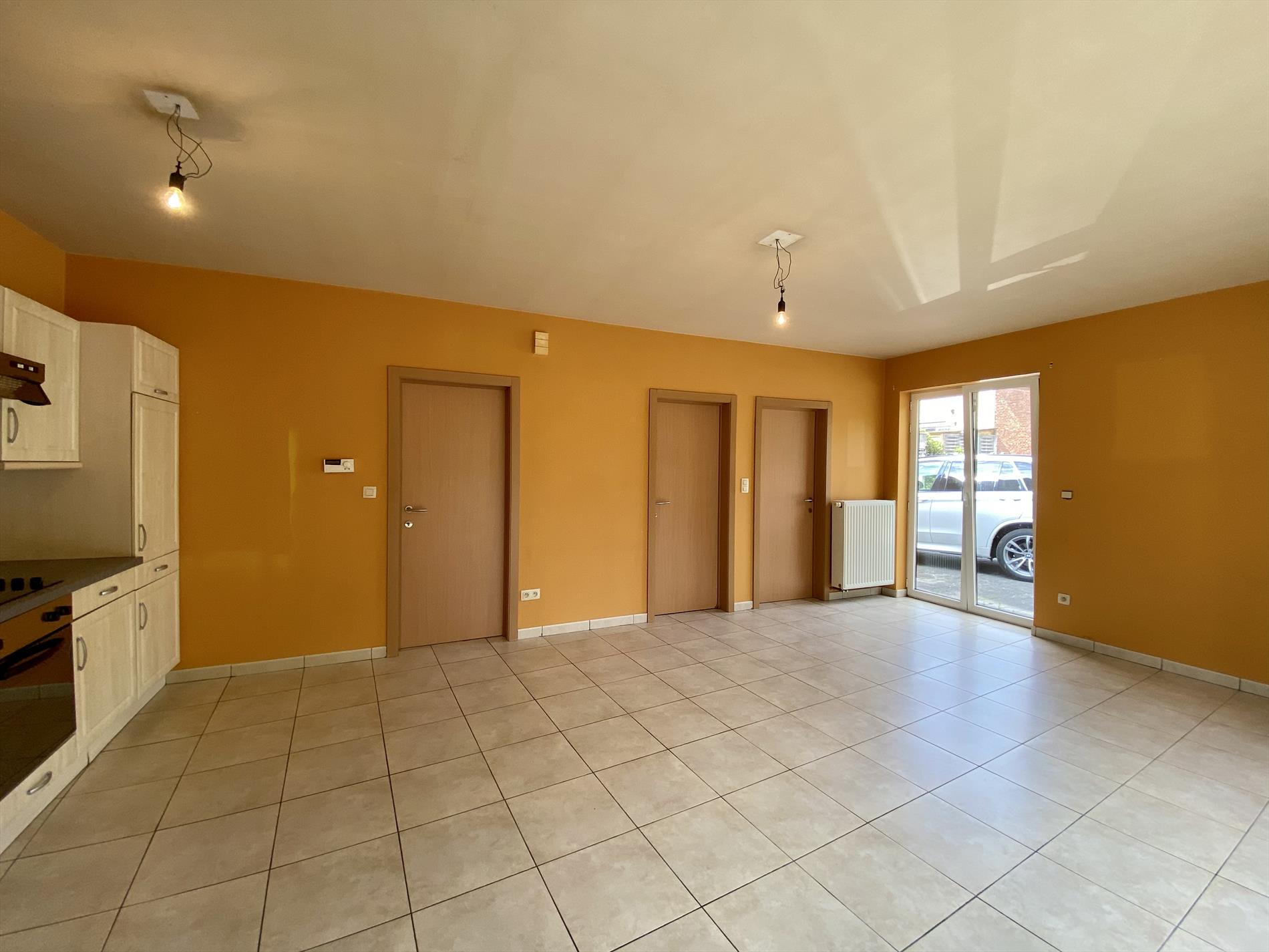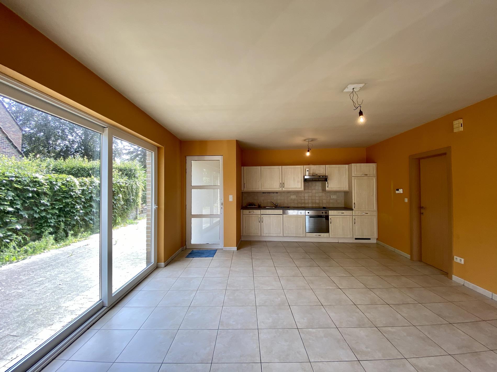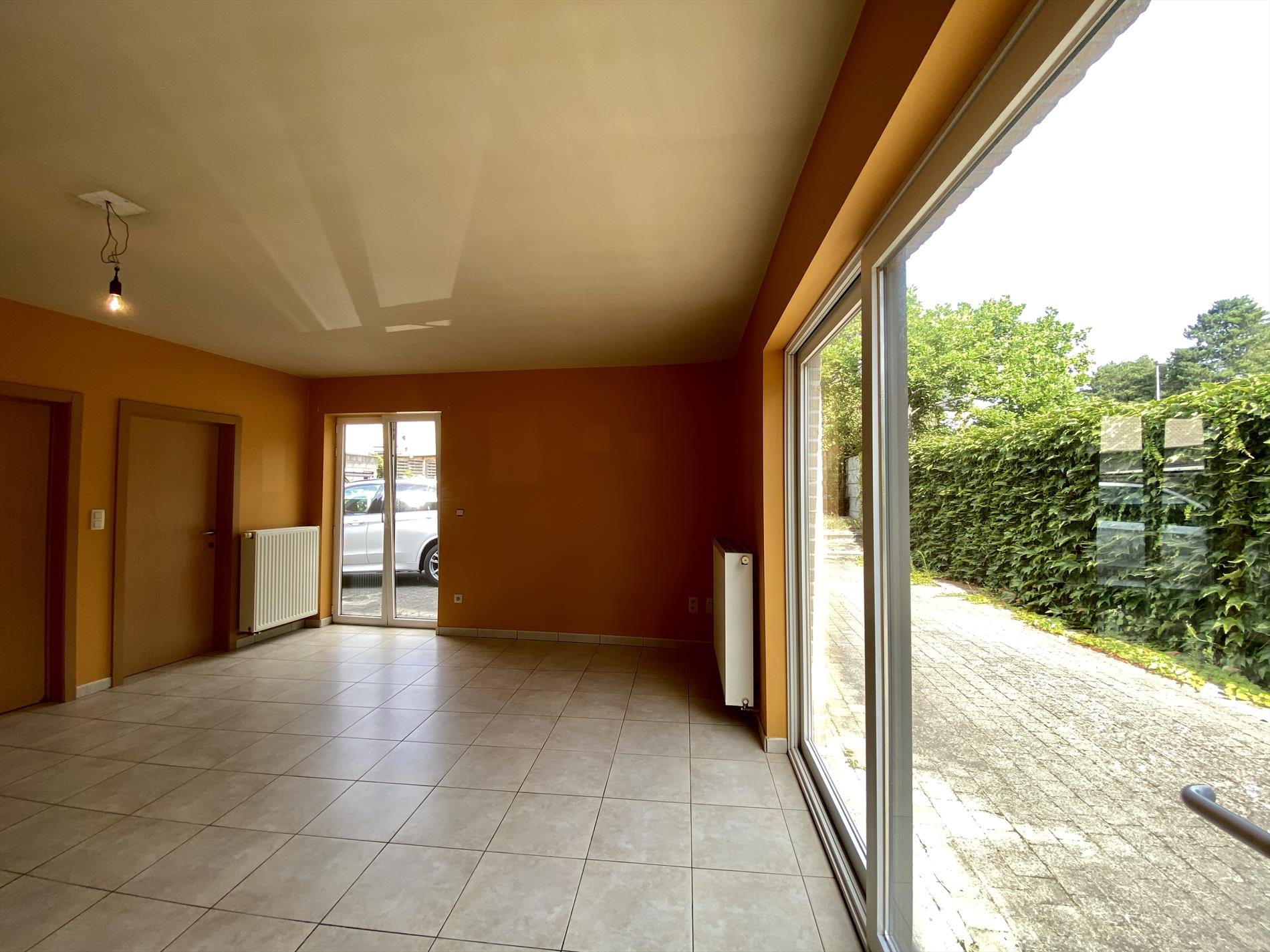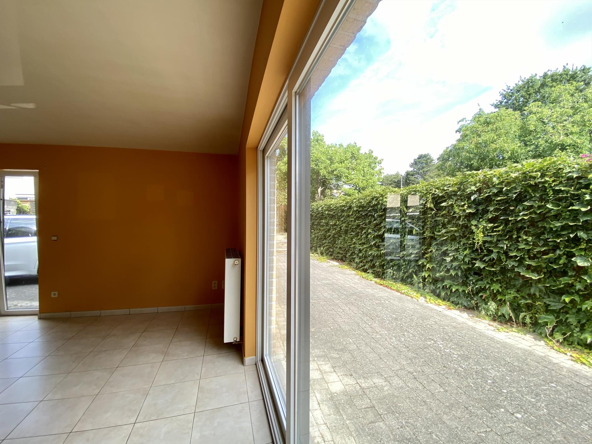 De indeling van dit gelijkvloers-appartement is als volgt: ruime living met tegelvloer die aansluit op de ingebouwde keukenblok met fornuis, oven, ijskast, dampkap en vaatwasser. Verder beschikt de woning oven een badkamer met alle comfort (douche, lavabo en toilet) en 2 slaapkamers.