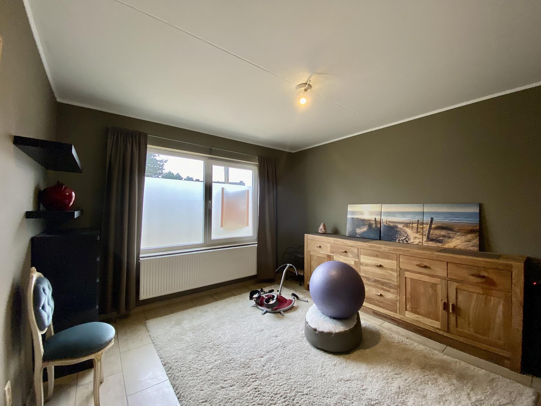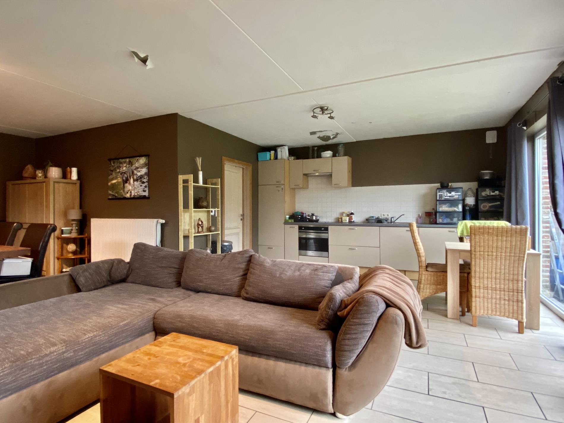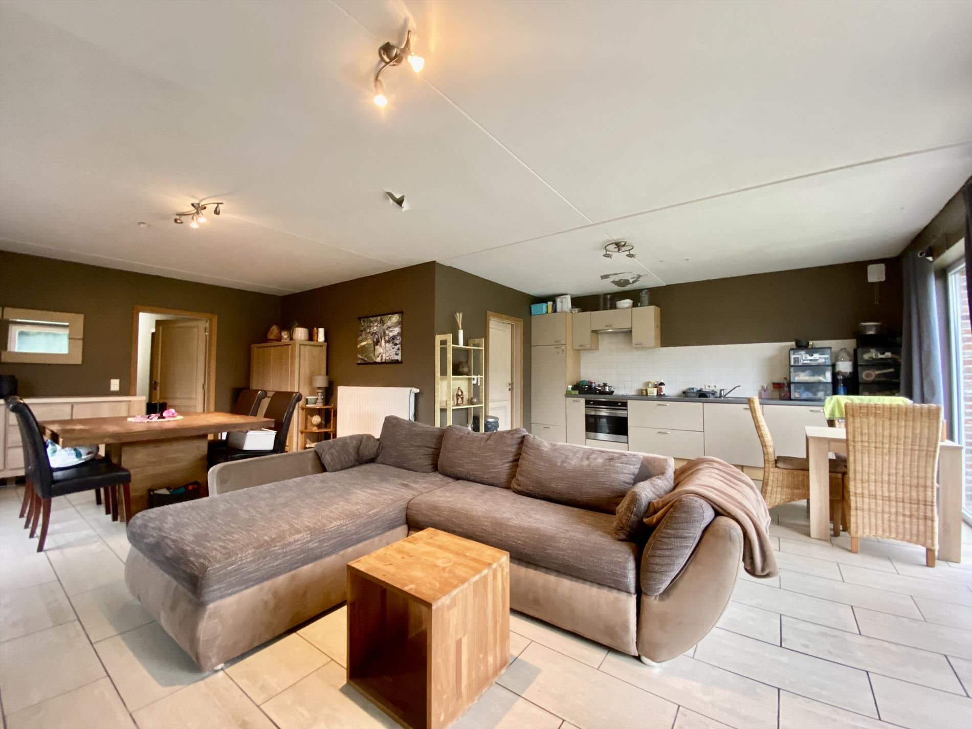 Dit ruime gelijkvloers-appartement heeft een indeling als volgt: een inkomhal met ruimte voor het hangen van jassen, een zeer ruime living met zicht op terras en tuin, ingebouwde keukenblok met fornuis, oven, ijskast en dampkap. Deze sluit ook nog aan op de ruime berging die als wasplaats gebruikt kan worden. Verder heeft de woning 2 badkamers. De eerste en grootste badkamer beschikt over een ligbad, lavabo en toilet. In de tweede badkamer is een toilet en douche aanwezig.