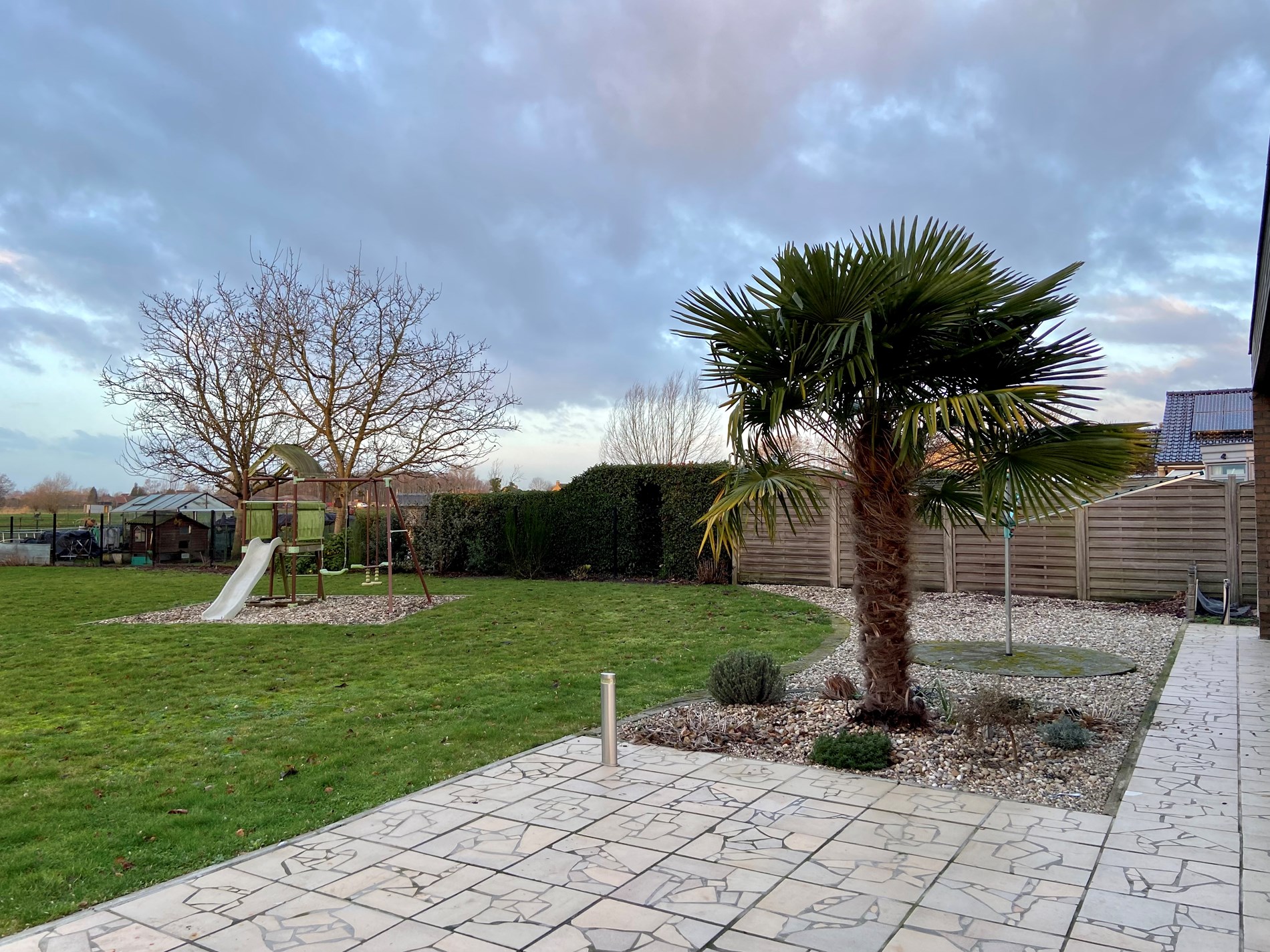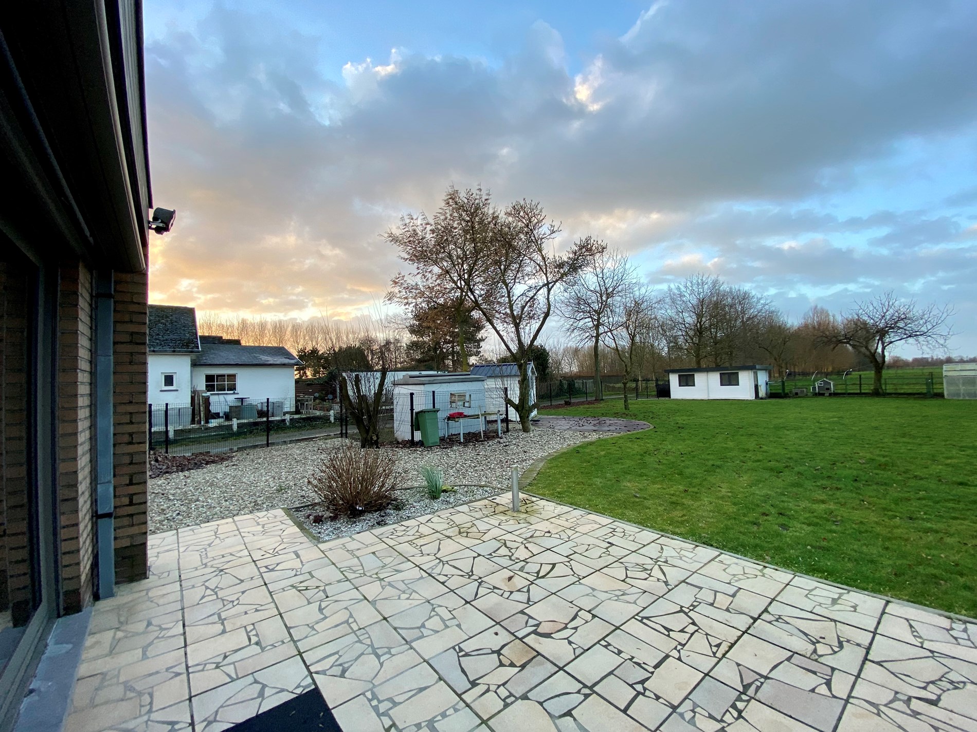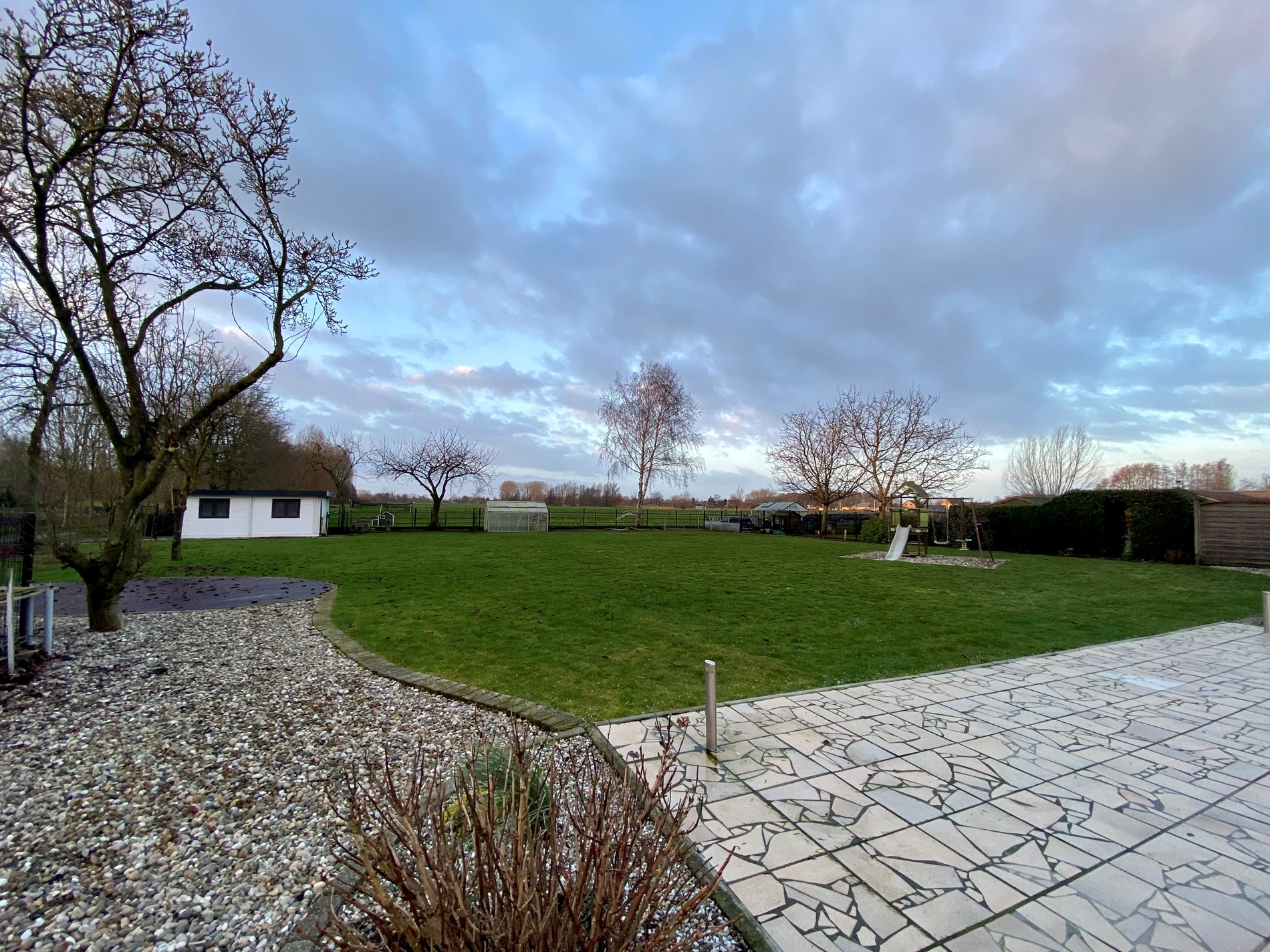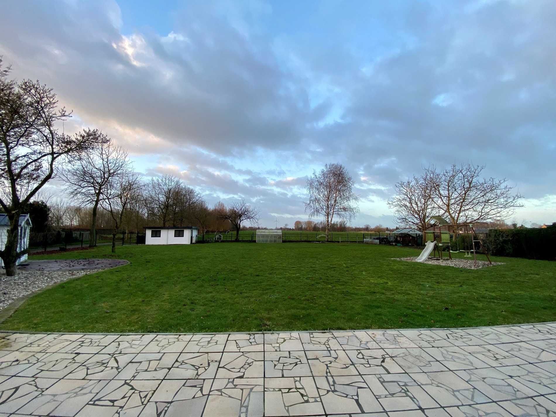 De woning beschikt over een zeer grote zuid-gerichte tuin met groot terras en tuinhuis, volledig omheind met hekjes.