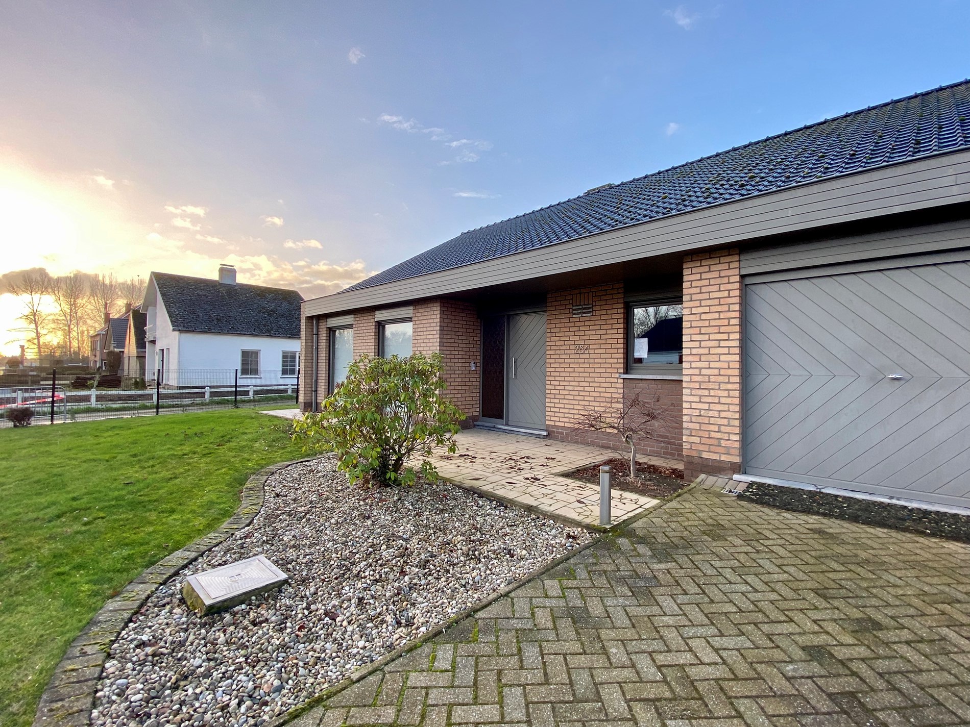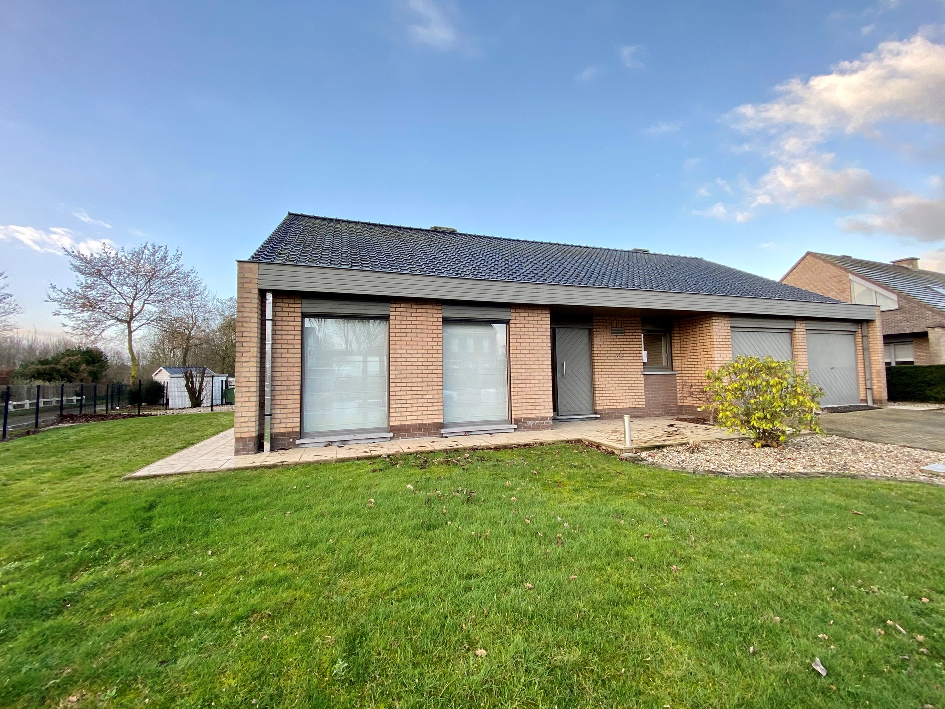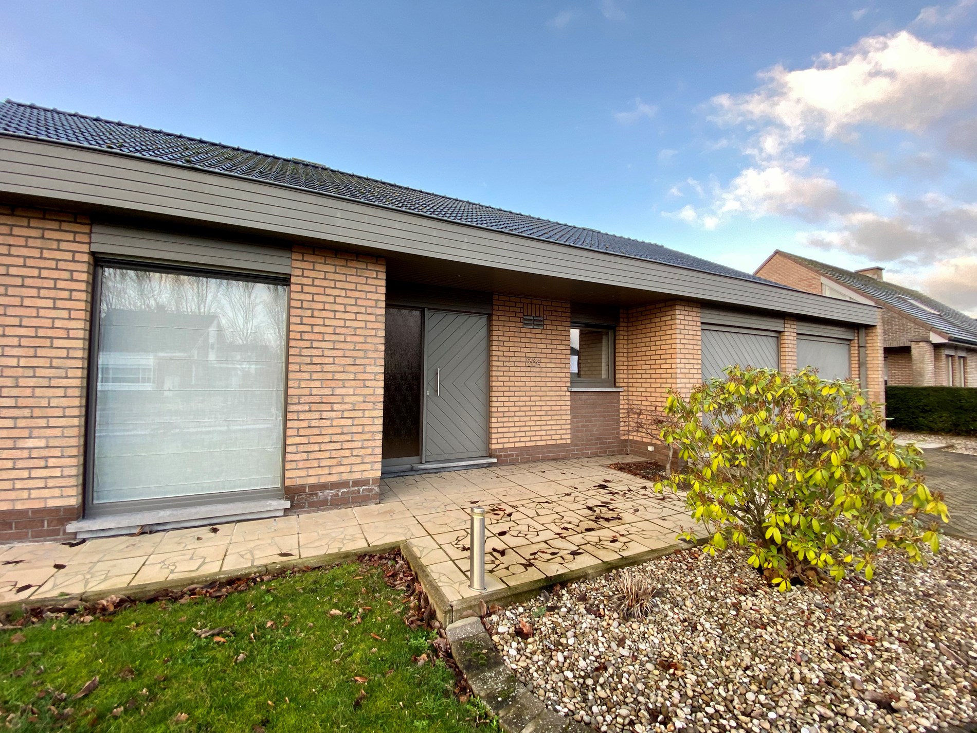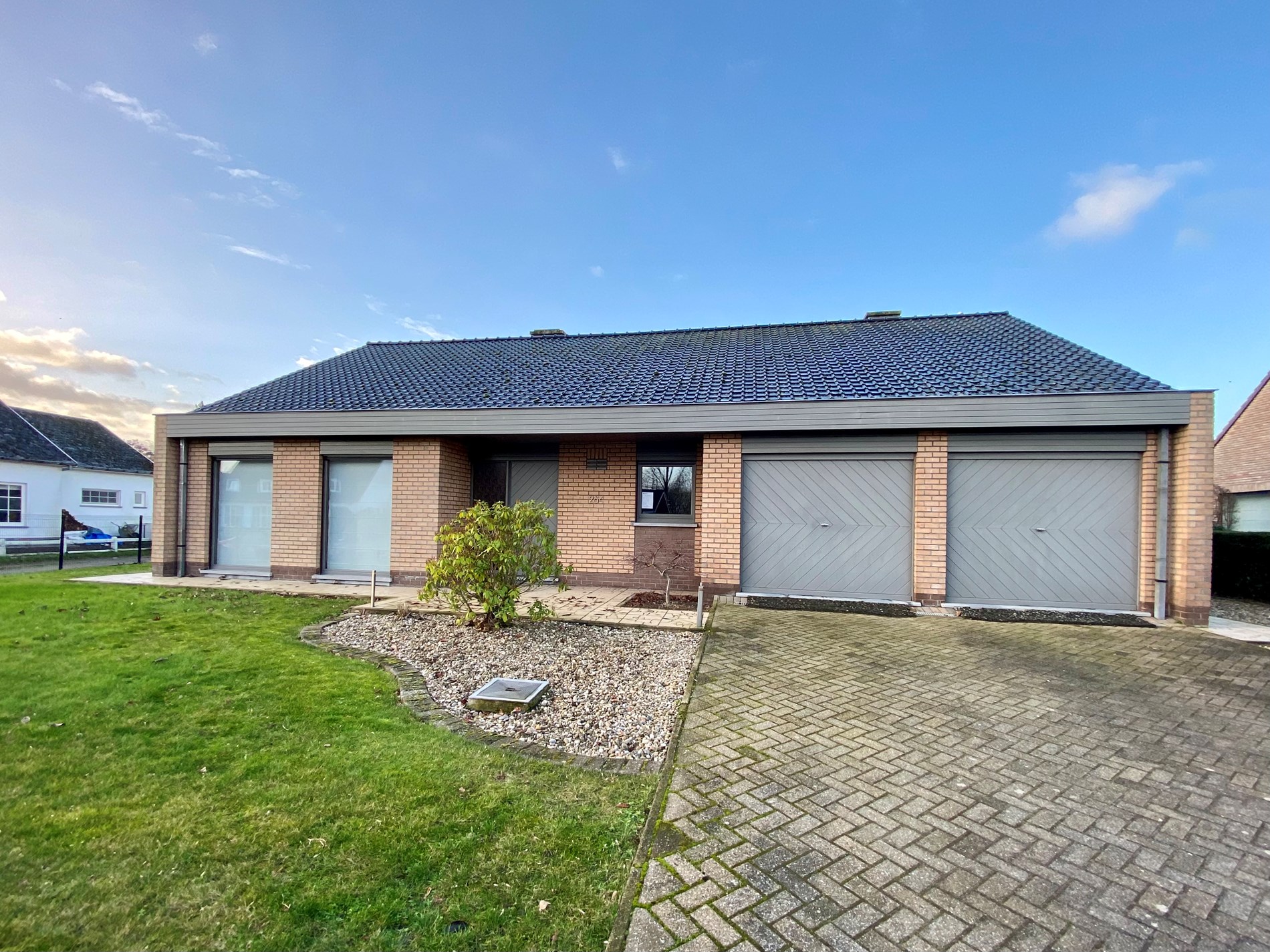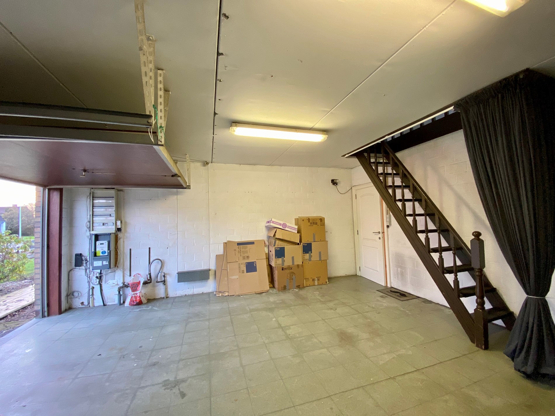 Deze ruime bungalow betreedt je via de inkomhal met gang en gastentoilet. De ruime woonkamer heeft veel lichtinval door de grote raampartijen en beschikt over een sierhaard. De keuken is voorzien van alle moderne apparatuur: kookvuur, oven, ijskast, dampkap en vaatwasser. Naast de keuken is nog een wasruimte en berging. De badkamer beschikt over een ligbad, dubbele lavabo en toilet. Verder beschikt de benedenverdieping over twee slaapkamers. De woning beschikt over een dubbele garage en achter in de tuin is nog een extra garage te bereiken via een zijweg. Via de garage (met dubbele poort) is er een trap naar de open zolder waar twee ruimtes gemaakt zijn, deze werden gebruikt als twee extra slaapkamers/hobbykamers. Bovendien is er nog een deel van de zolder dat als opbergruimte gebruikt kan worden.