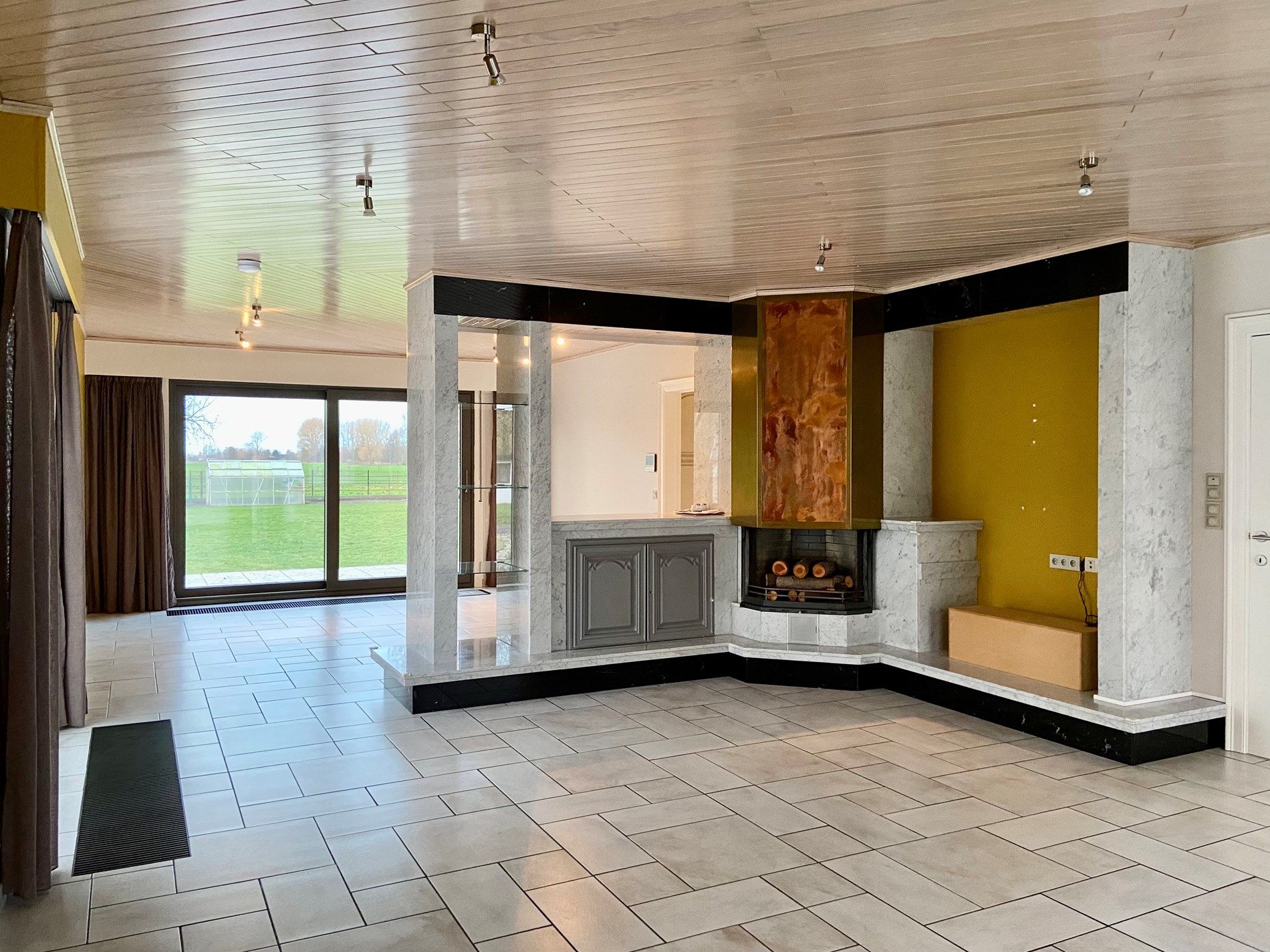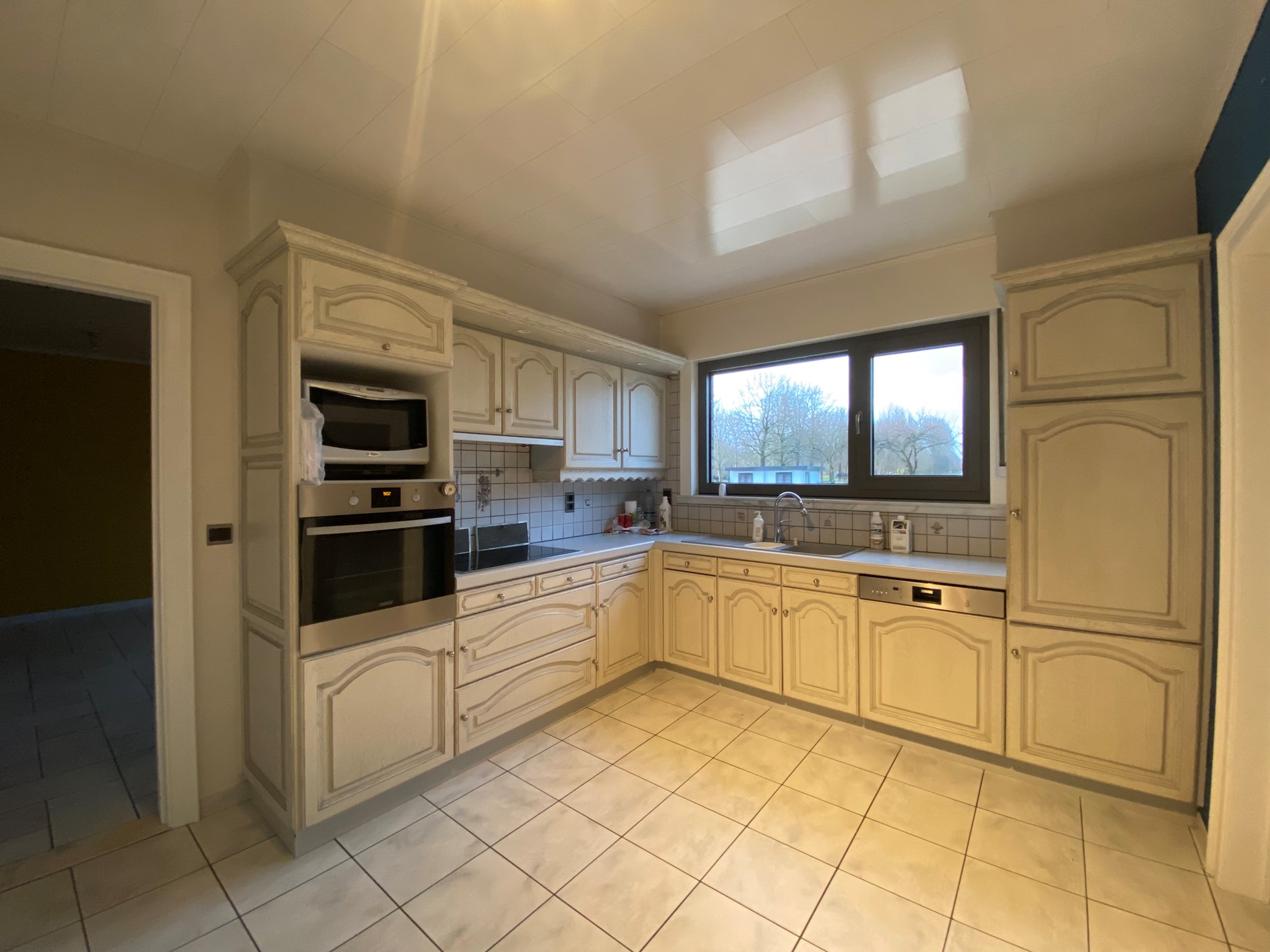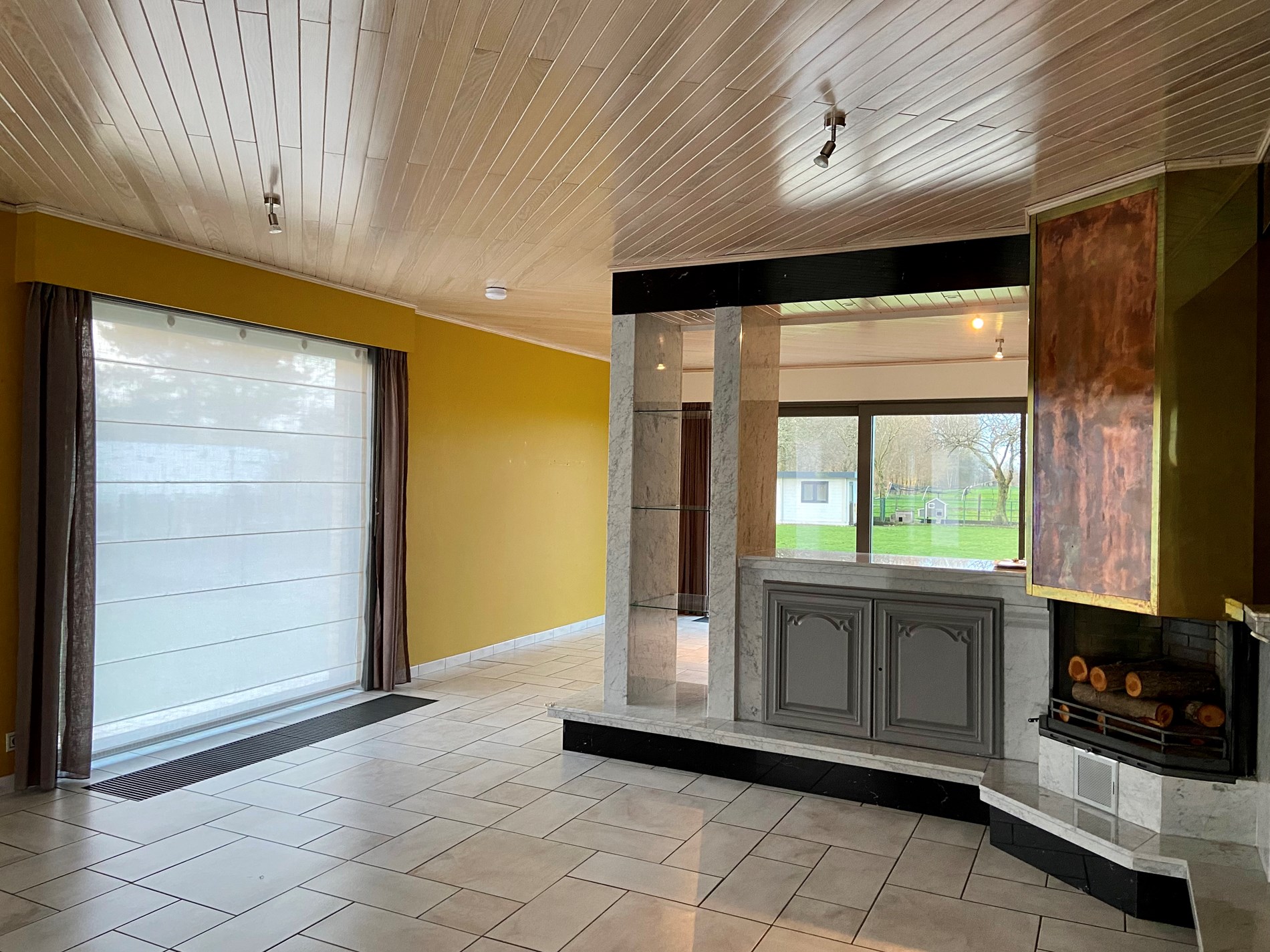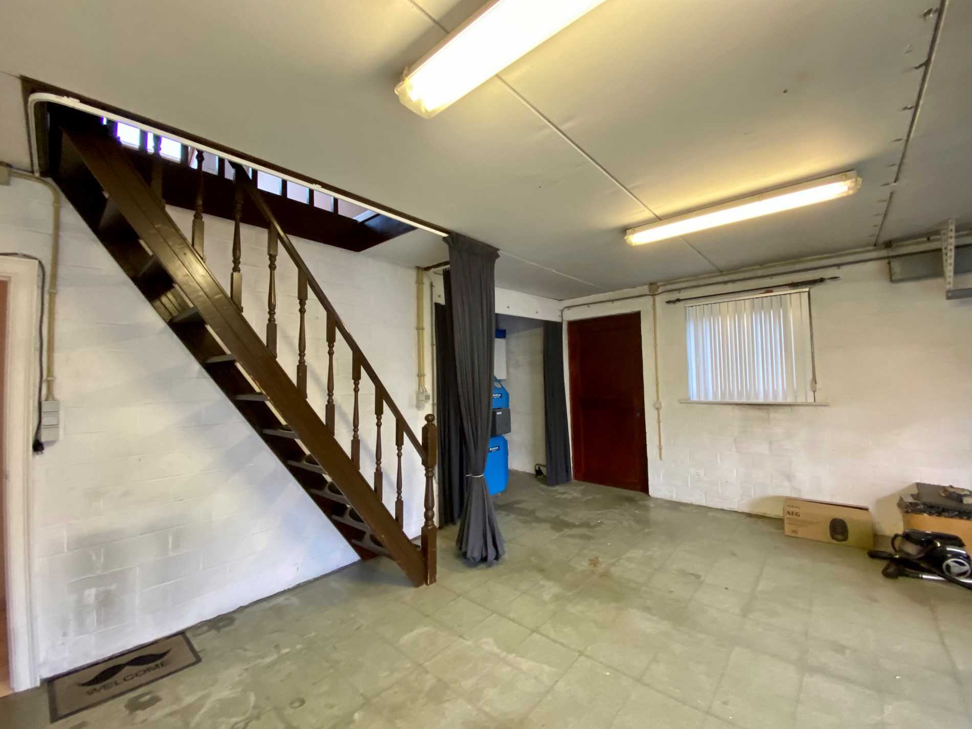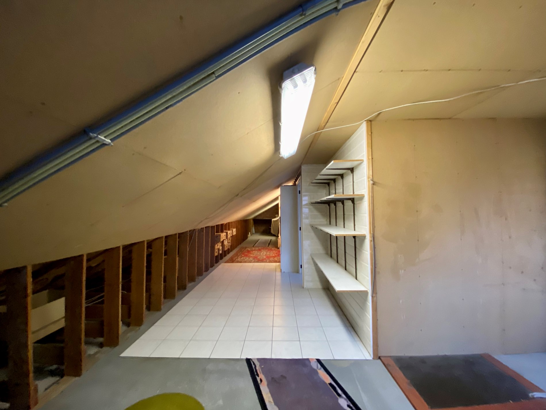 Deze ruime bungalow betreedt je via de inkomhal met gang en gastentoilet. De ruime woonkamer heeft veel lichtinval door de grote raampartijen en beschikt over een sierhaard. De keuken is voorzien van alle moderne apparatuur: kookvuur, oven, ijskast, dampkap en vaatwasser. Naast de keuken is nog een wasruimte en berging. De badkamer beschikt over een ligbad, dubbele lavabo en toilet. Verder beschikt de benedenverdieping over twee slaapkamers. De woning beschikt over een dubbele garage en achter in de tuin is nog een extra garage te bereiken via een zijweg. Via de garage (met dubbele poort) is er een trap naar de open zolder waar twee ruimtes gemaakt zijn, deze werden gebruikt als twee extra slaapkamers/hobbykamers. Bovendien is er nog een deel van de zolder dat als opbergruimte gebruikt kan worden.