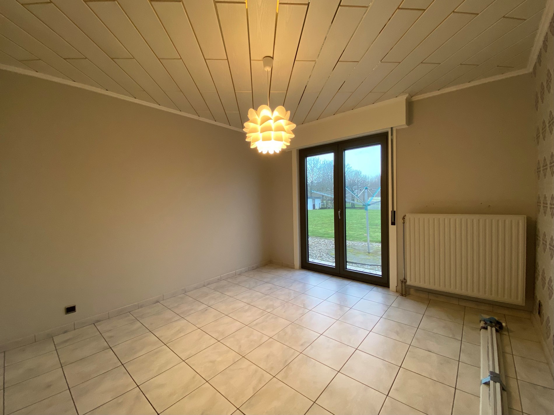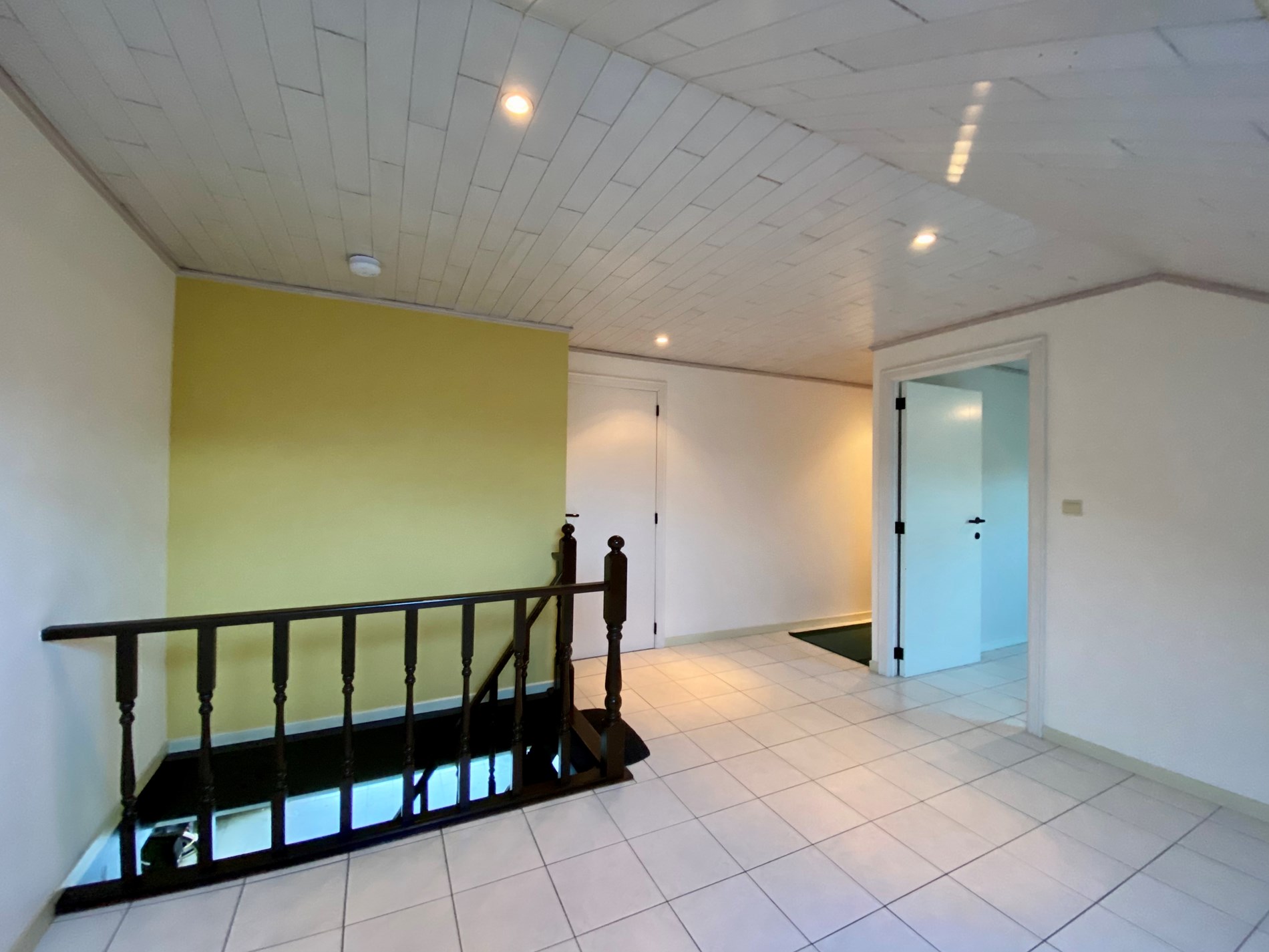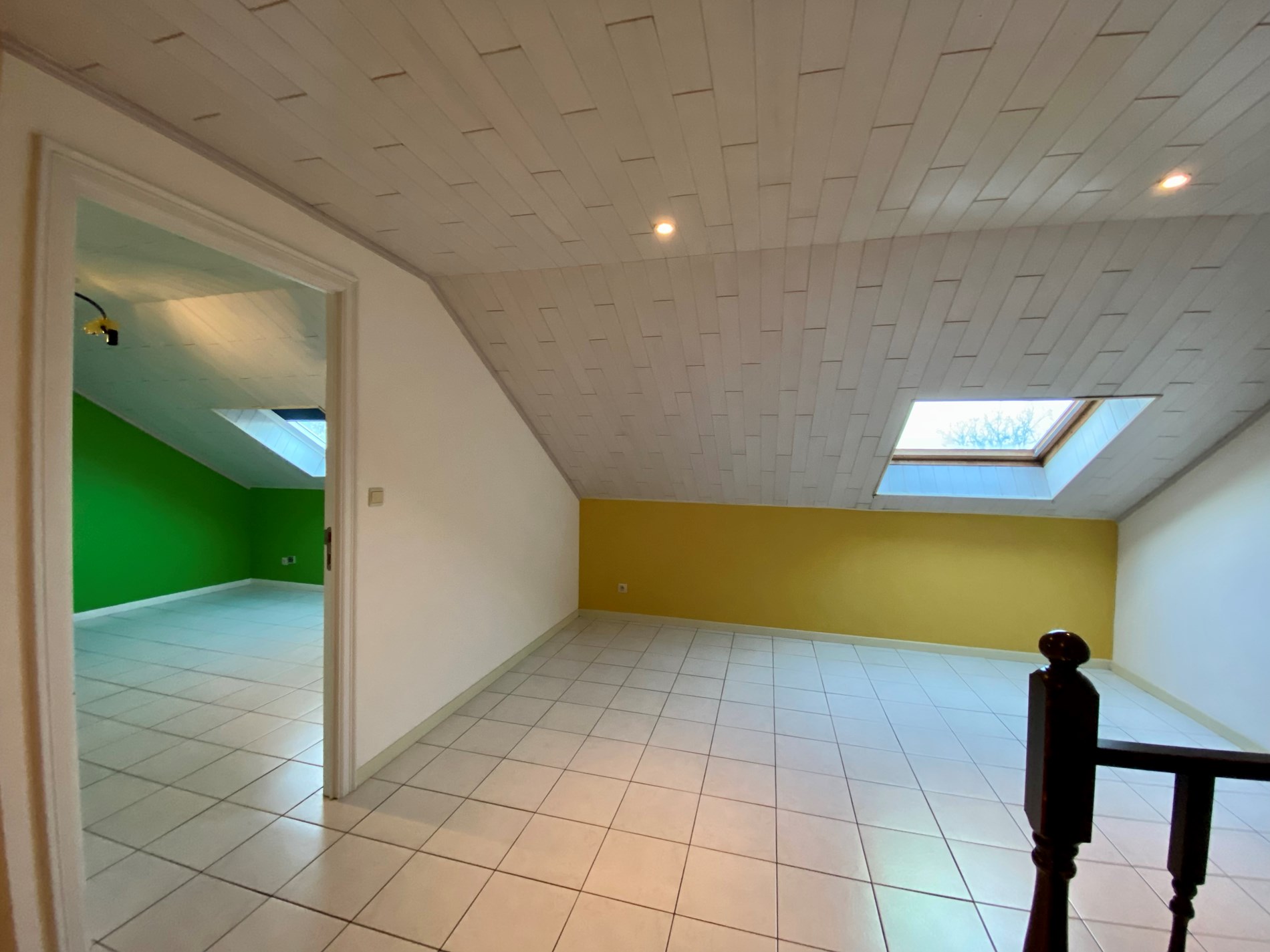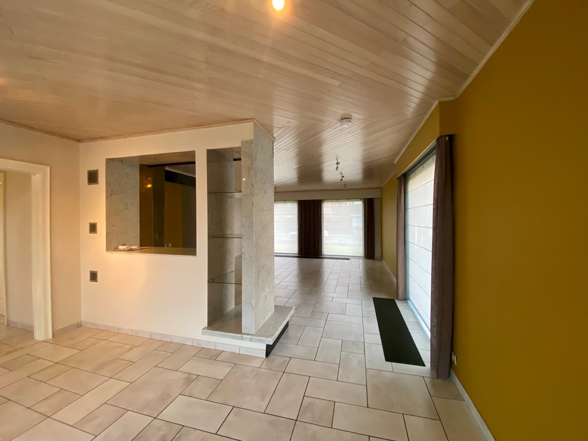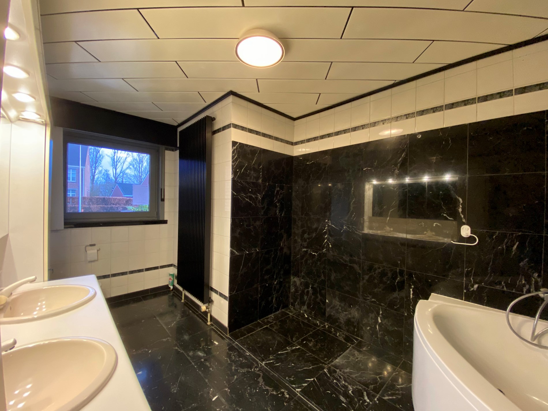 Deze ruime bungalow betreedt je via de inkomhal met gang en gastentoilet. De ruime woonkamer heeft veel lichtinval door de grote raampartijen en beschikt over een sierhaard. De keuken is voorzien van alle moderne apparatuur: kookvuur, oven, ijskast, dampkap en vaatwasser. Naast de keuken is nog een wasruimte en berging. De badkamer beschikt over een ligbad, dubbele lavabo en toilet. Verder beschikt de benedenverdieping over twee slaapkamers. De woning beschikt over een dubbele garage en achter in de tuin is nog een extra garage te bereiken via een zijweg. Via de garage (met dubbele poort) is er een trap naar de open zolder waar twee ruimtes gemaakt zijn, deze werden gebruikt als twee extra slaapkamers/hobbykamers. Bovendien is er nog een deel van de zolder dat als opbergruimte gebruikt kan worden.