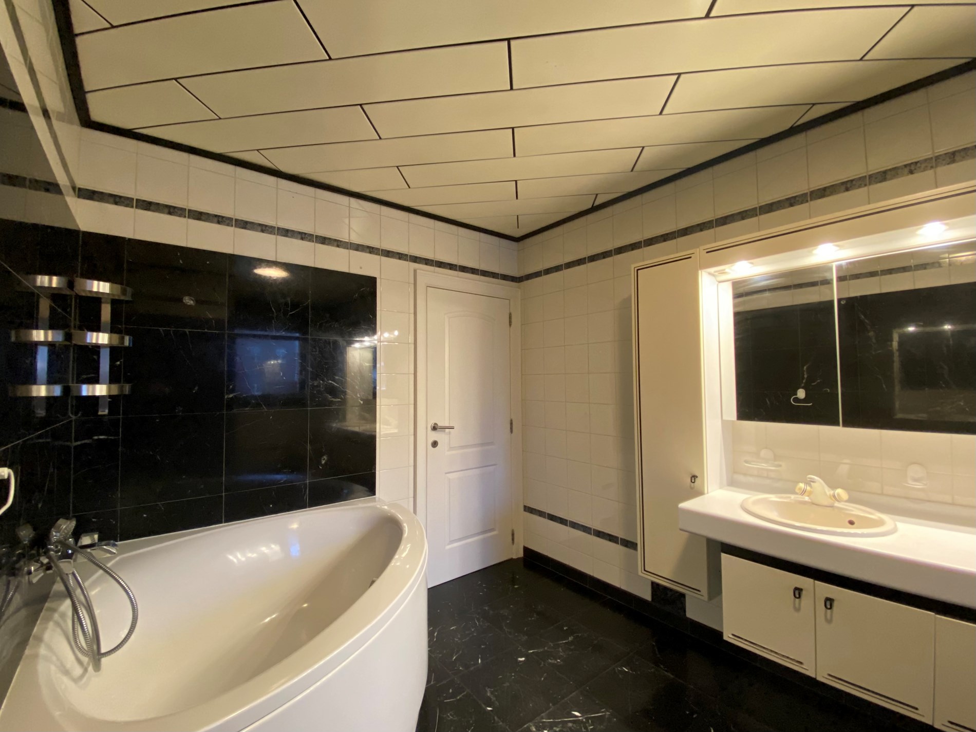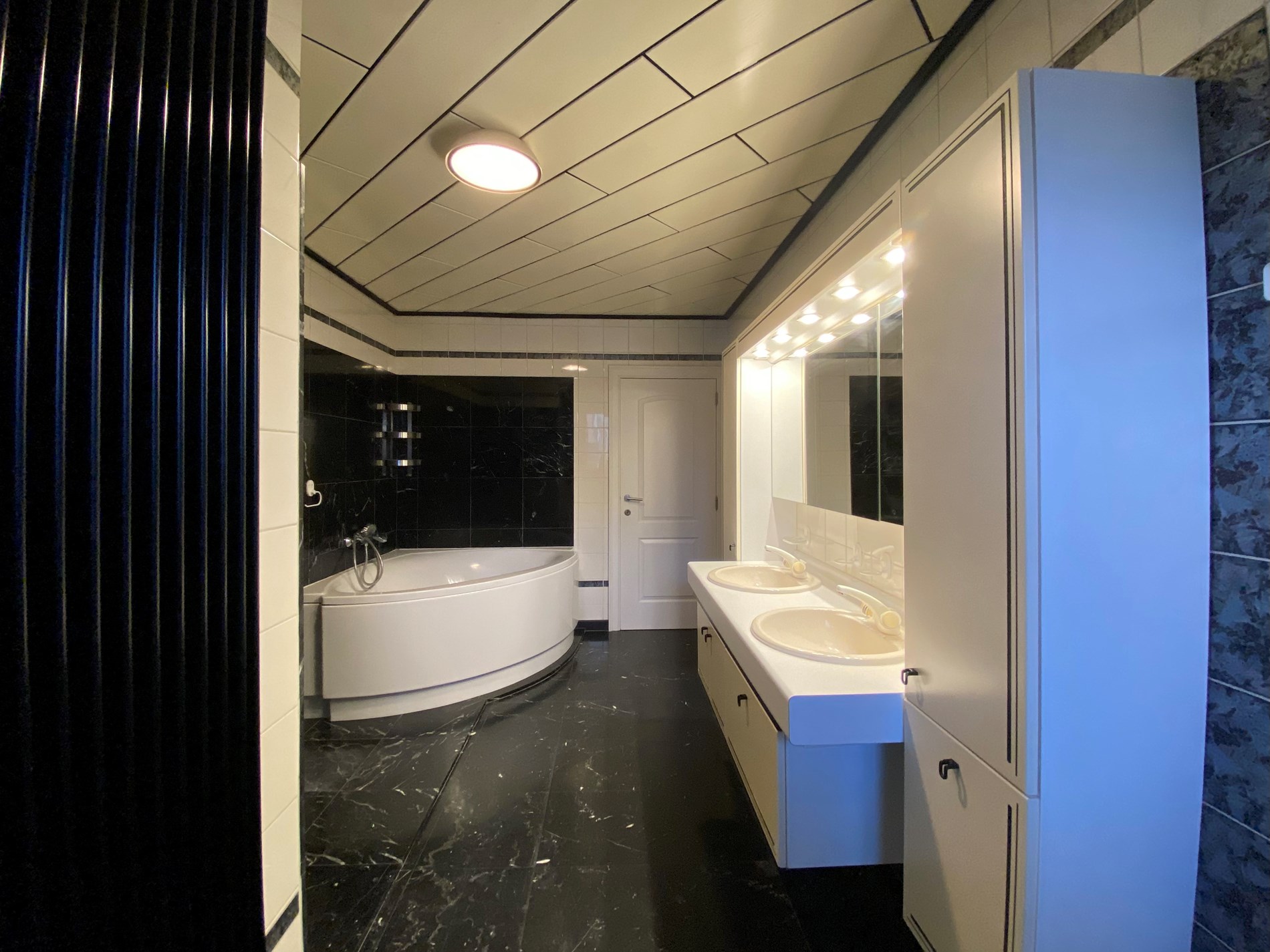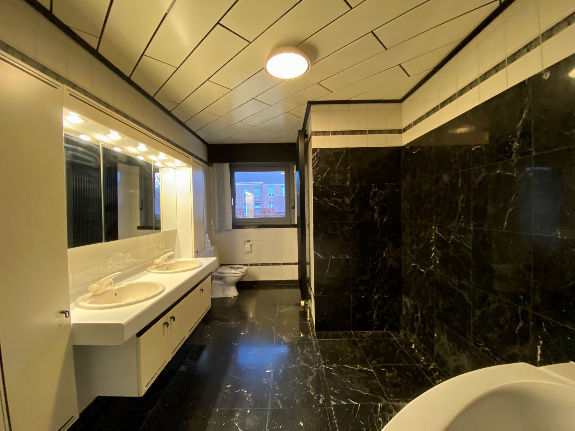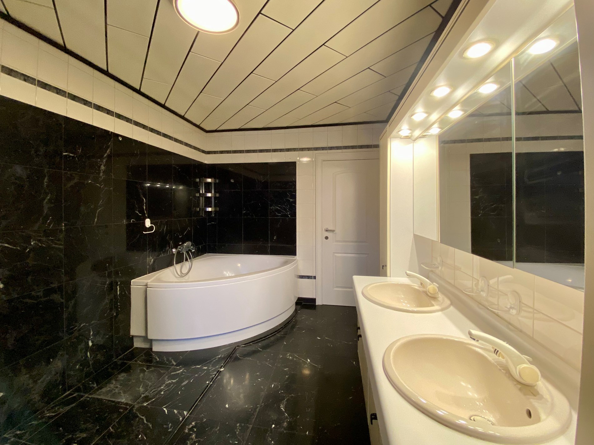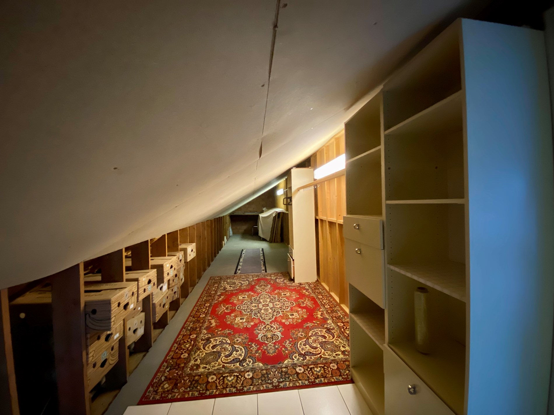Deze ruime bungalow betreedt je via de inkomhal met gang en gastentoilet. De ruime woonkamer heeft veel lichtinval door de grote raampartijen en beschikt over een sierhaard. De keuken is voorzien van alle moderne apparatuur: kookvuur, oven, ijskast, dampkap en vaatwasser. Naast de keuken is nog een wasruimte en berging. De badkamer beschikt over een ligbad, dubbele lavabo en toilet. Verder beschikt de benedenverdieping over twee slaapkamers. De woning beschikt over een dubbele garage en achter in de tuin is nog een extra garage te bereiken via een zijweg. Via de garage (met dubbele poort) is er een trap naar de open zolder waar twee ruimtes gemaakt zijn, deze werden gebruikt als twee extra slaapkamers/hobbykamers. Bovendien is er nog een deel van de zolder dat als opbergruimte gebruikt kan worden.