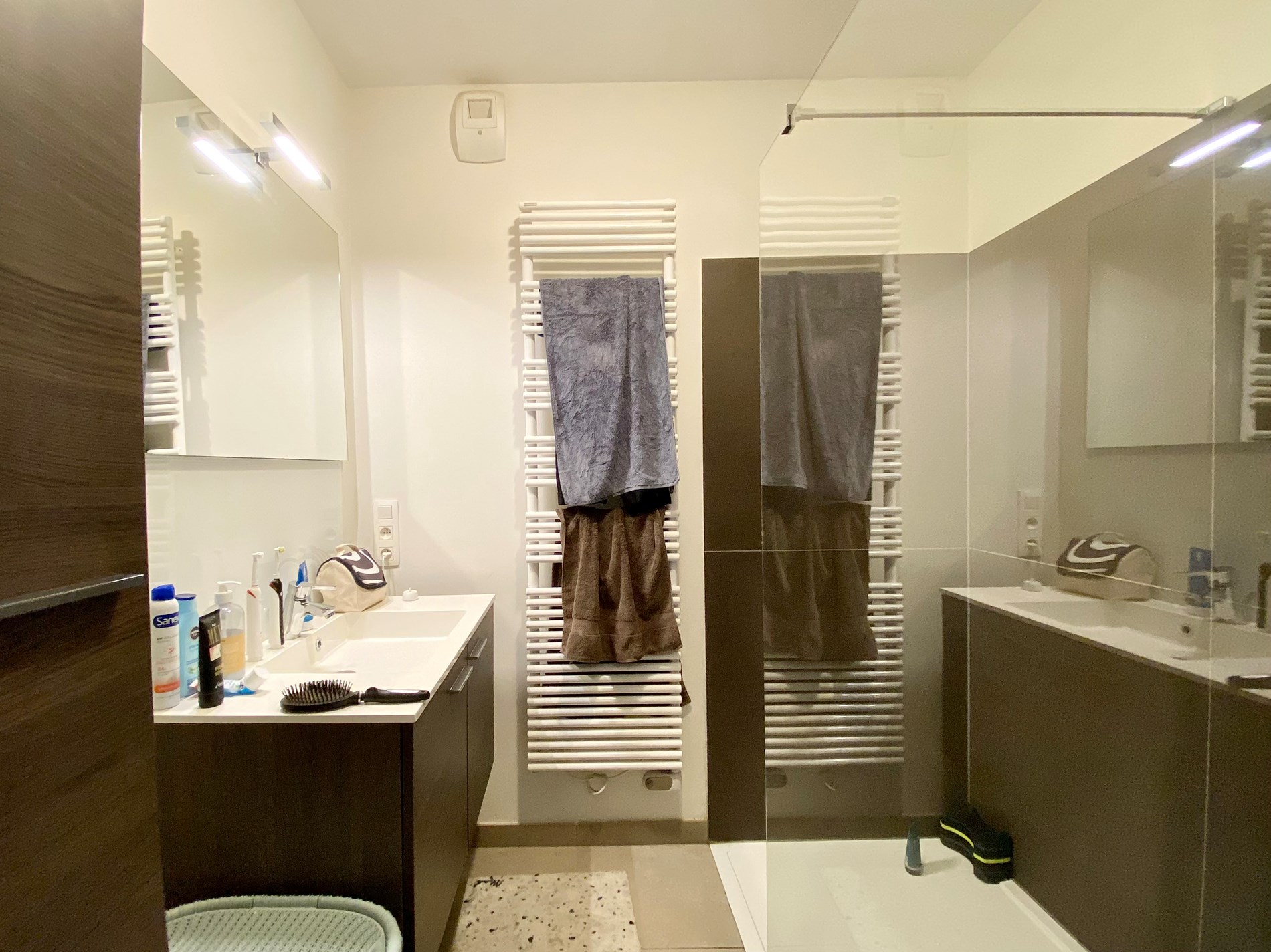 Het appartement beschikt verder over een apart gastentoilet, een moderne badkamer met lavabo en inloopdouche en twee slaapkamers.