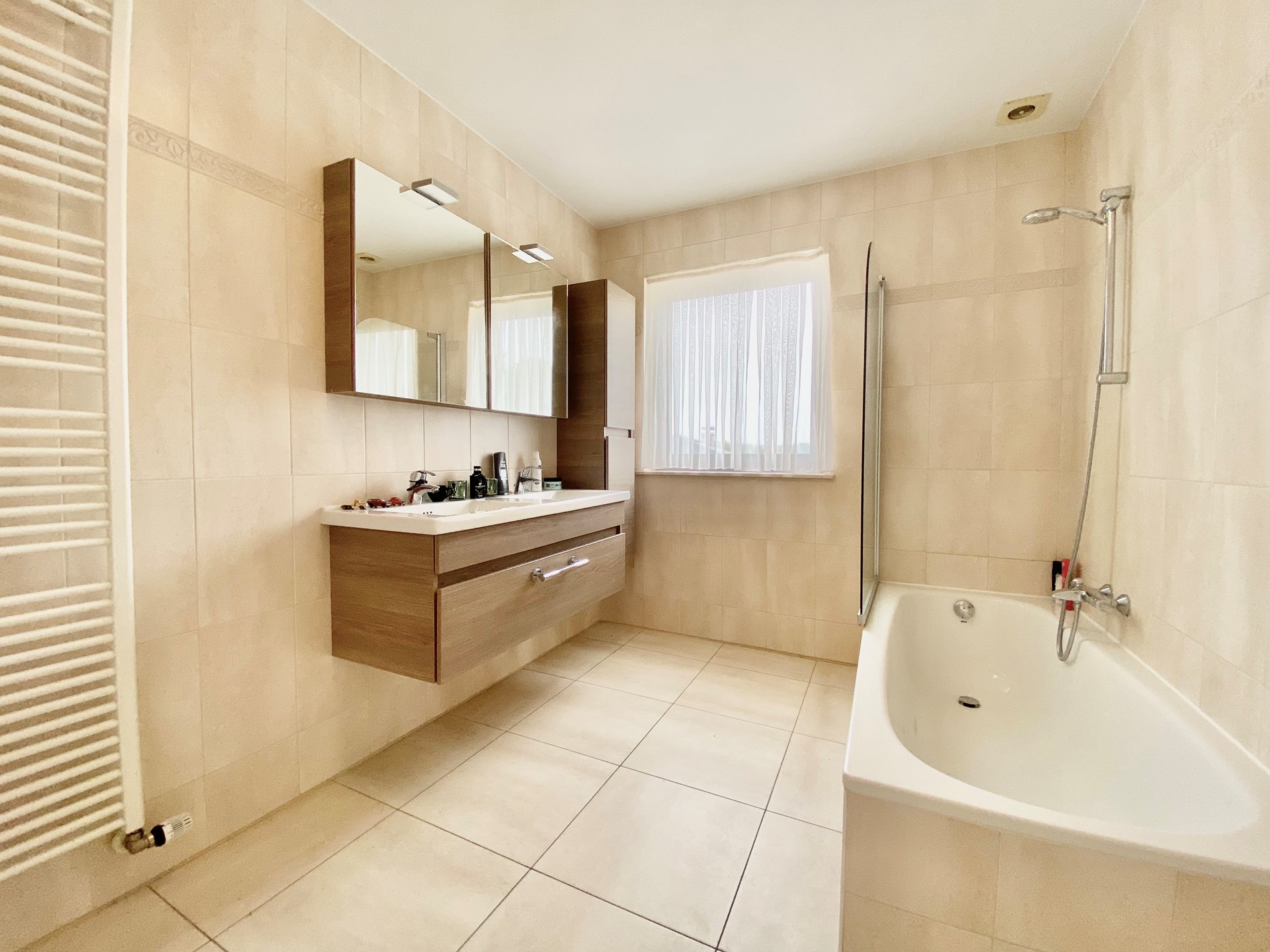 Via de trap naar boven zijn er 3 slaapkamers en een badkamer met ligbad en douchescherm, een dubbele wastafel met meubel en toilet.