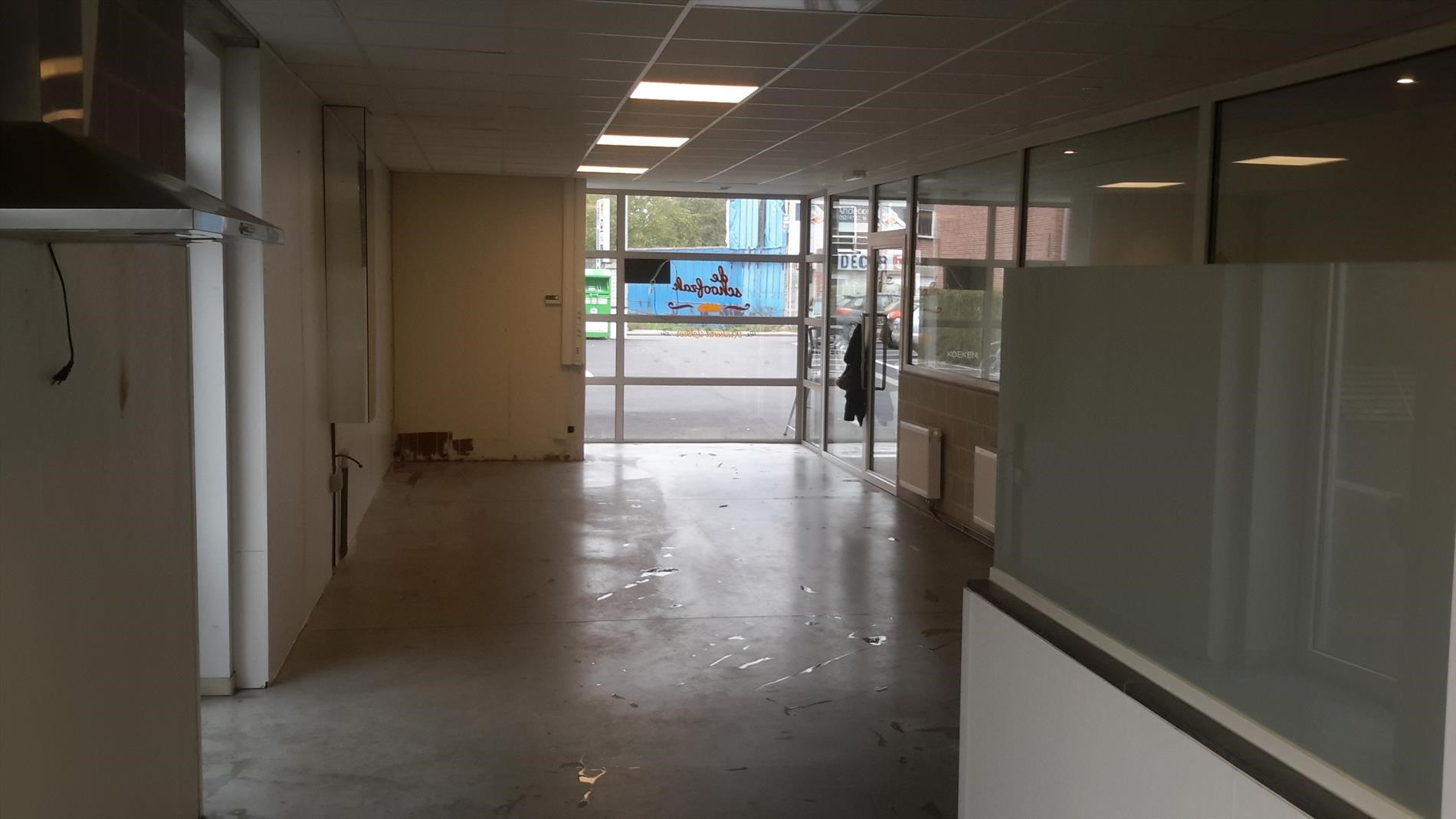 In dit handelspand van 58 m² geniet je van een aangename, lichtrijke werkruimte dankzij de grote raampartij aan de voorzijde.