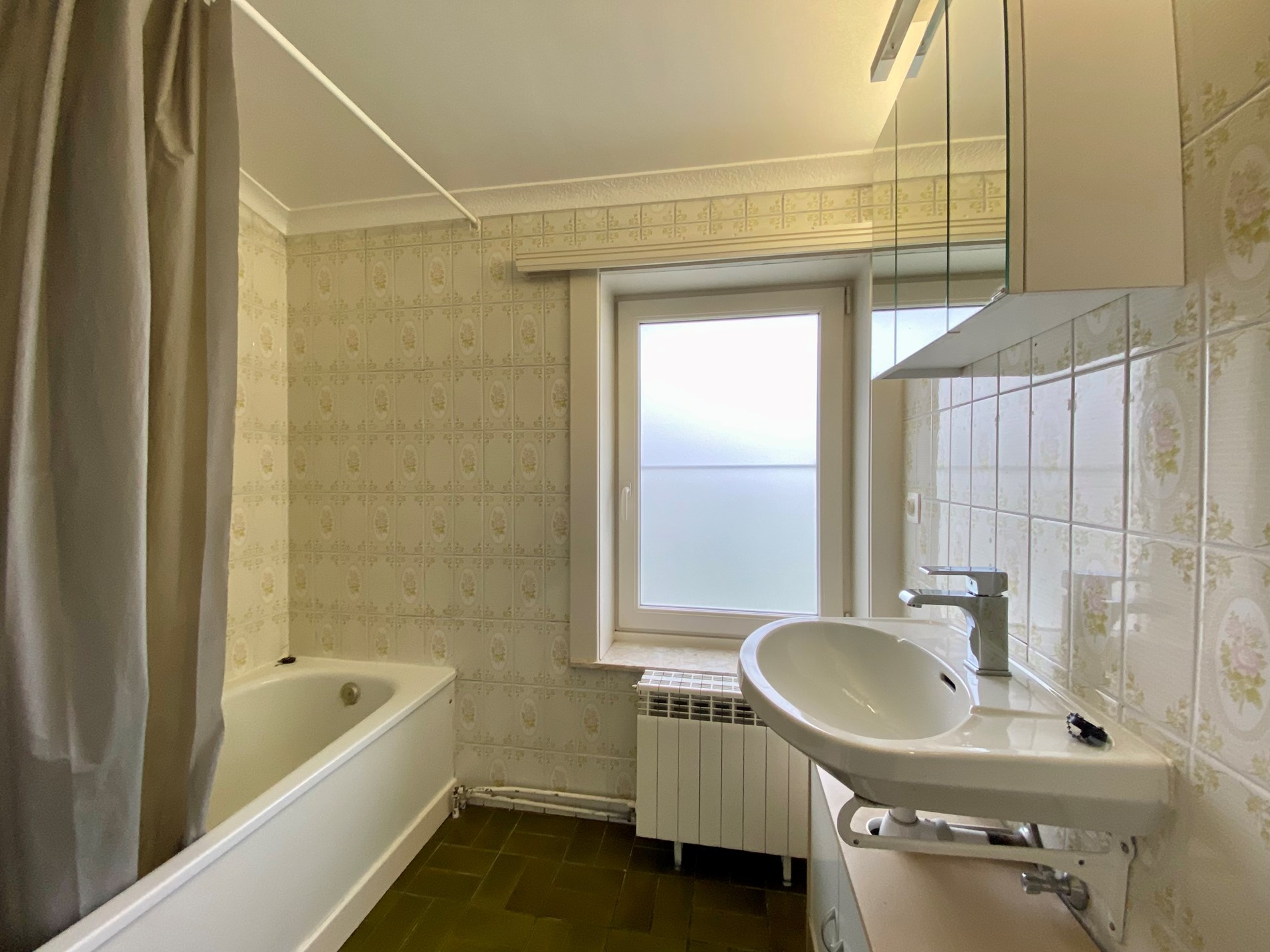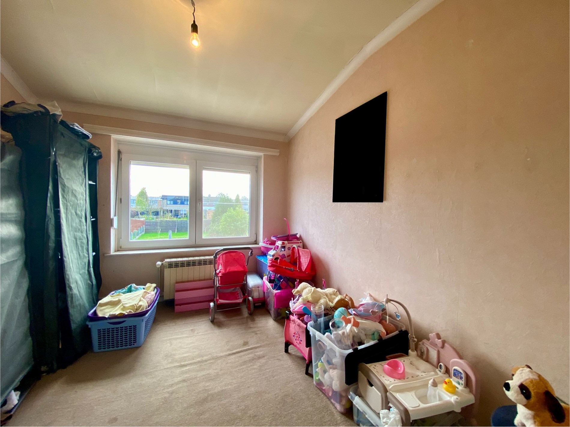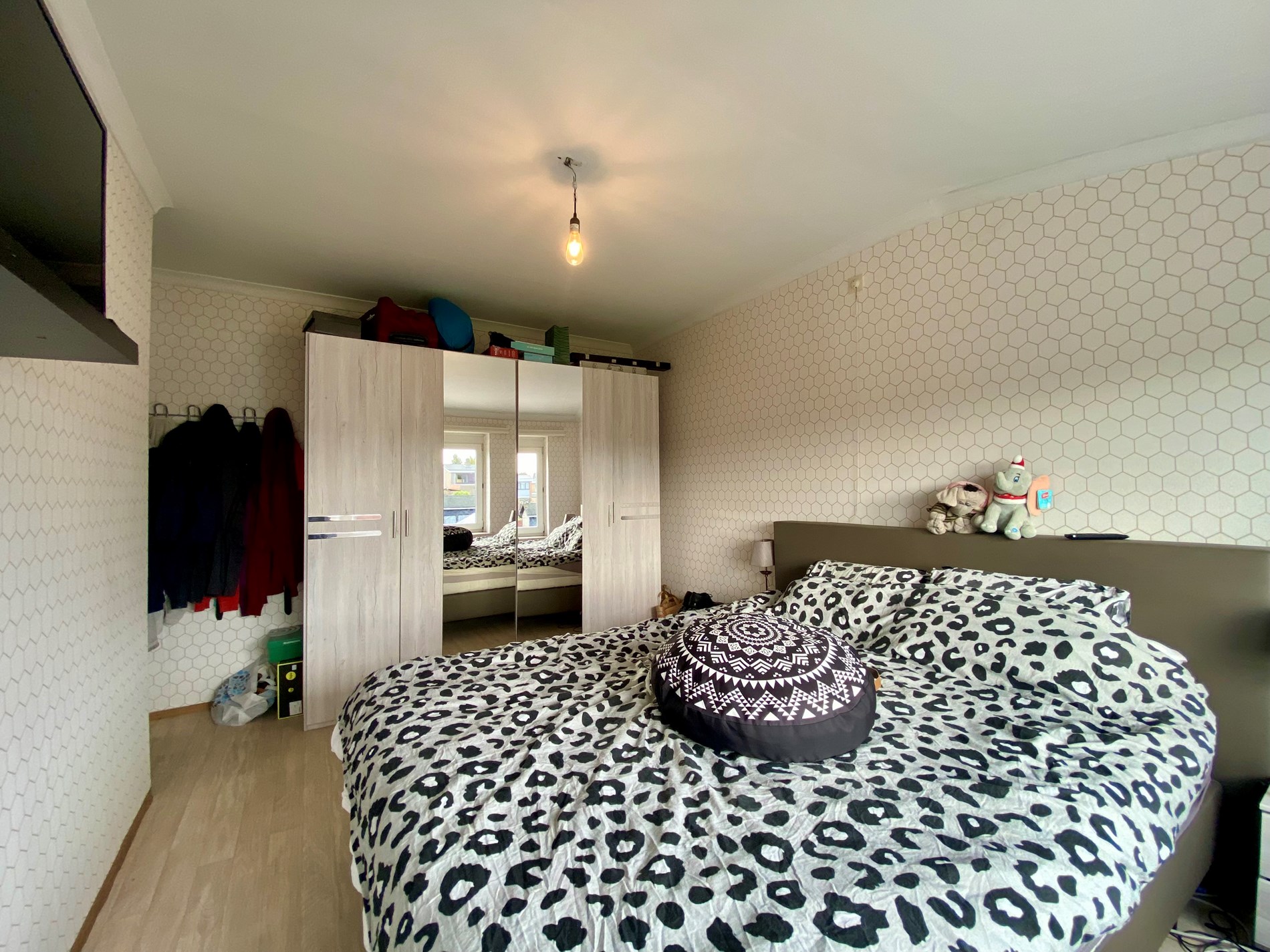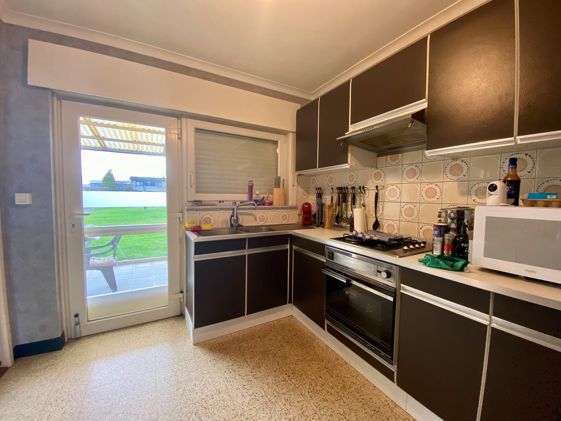 Deze fijne woning heeft een indeling als volgt: een inkomhal met gastentoilet, een lichtrijke woonkamer met zicht op de grote tuin en een ingerichte keuken (kookvuur op aardgas, dampkap en dubbele gootsteen). Via de trap naar boven zijn 2 slaapkamers, een bureau/bergruimte/hobbyruimte en een badkamer met ligbad en lavabo.
