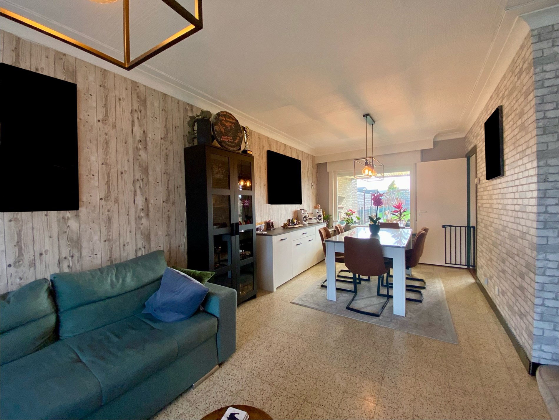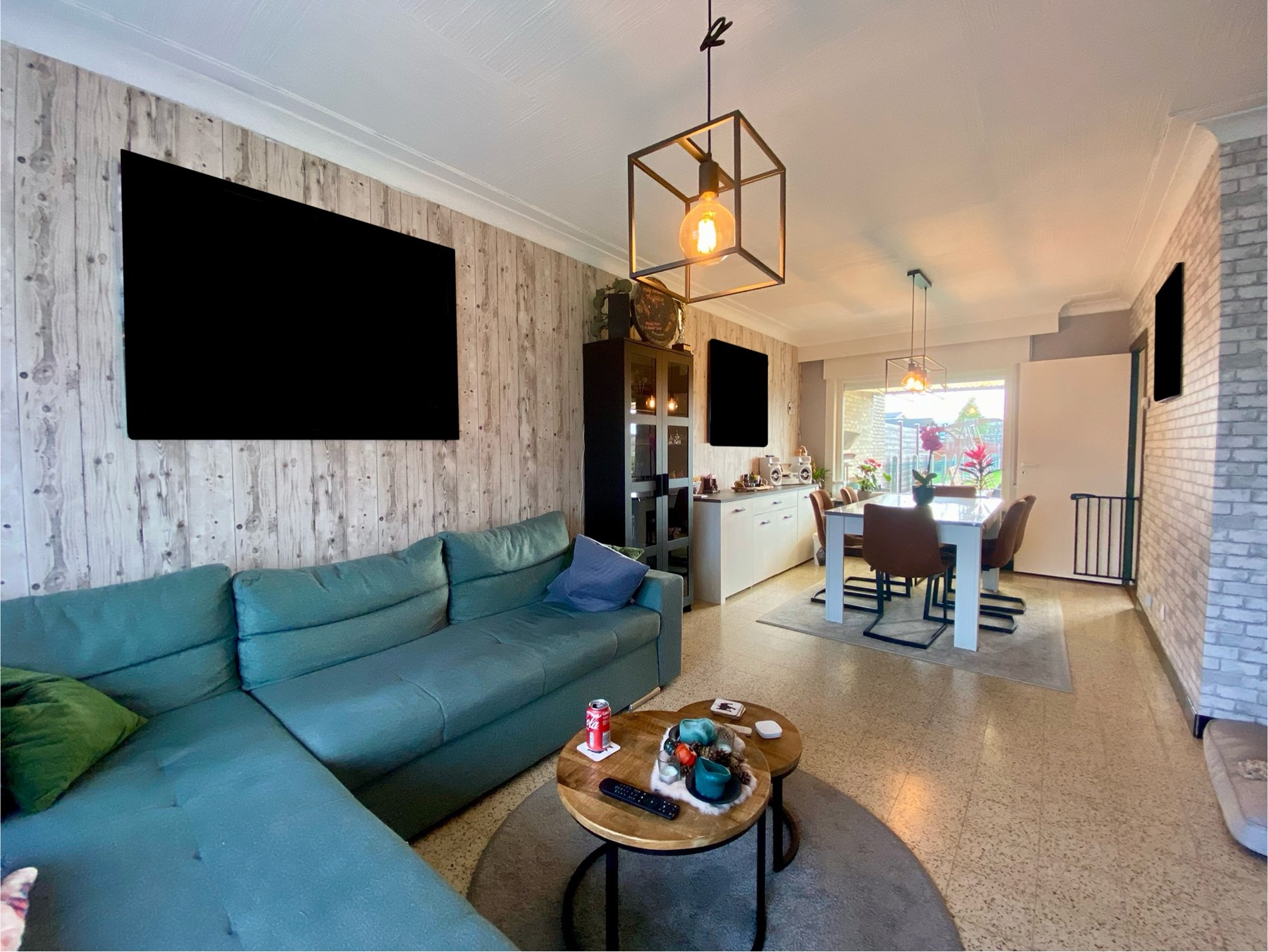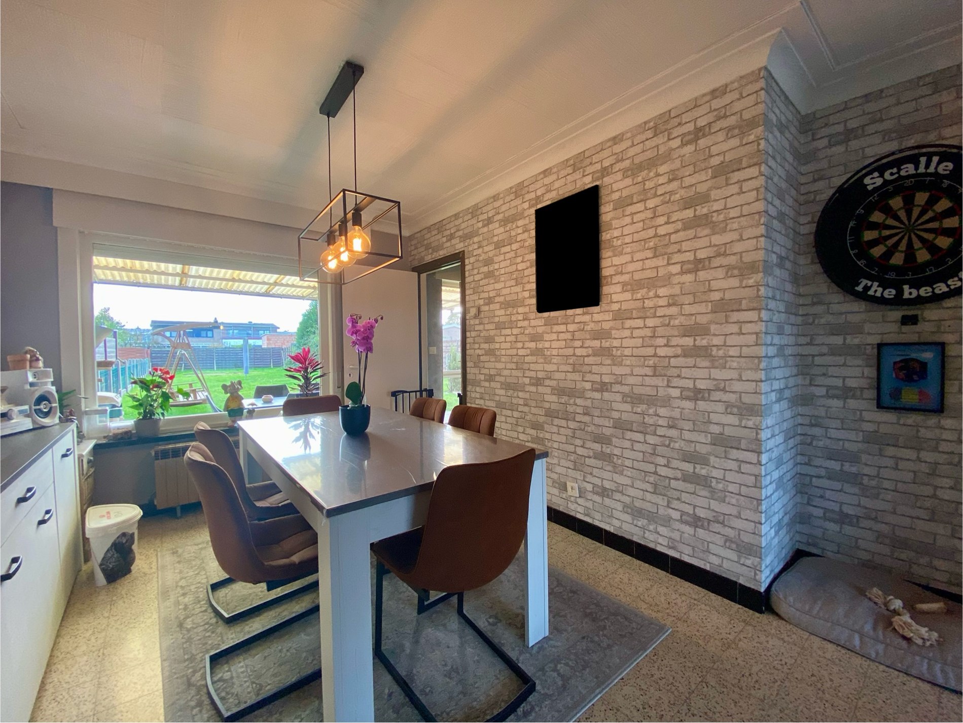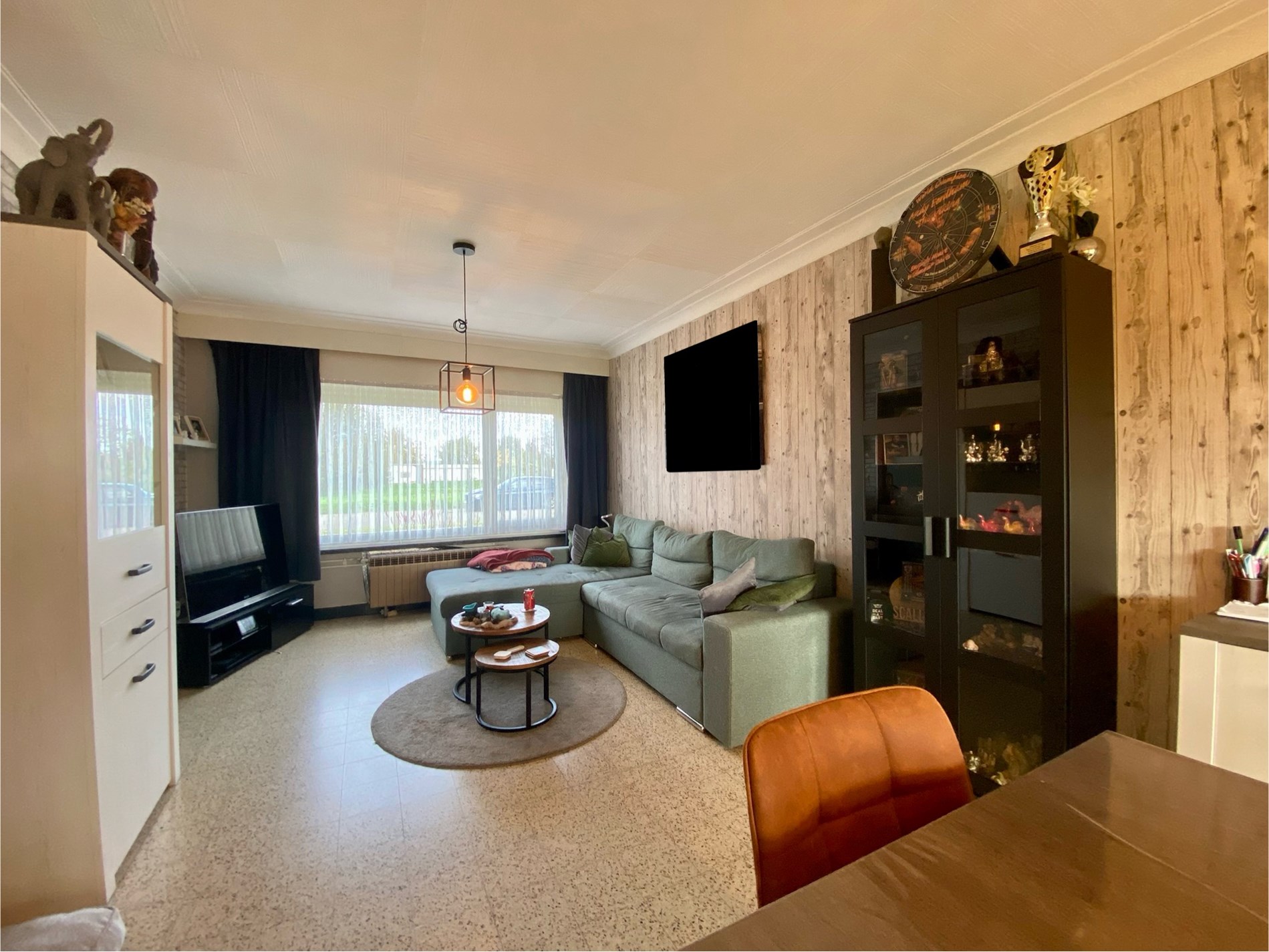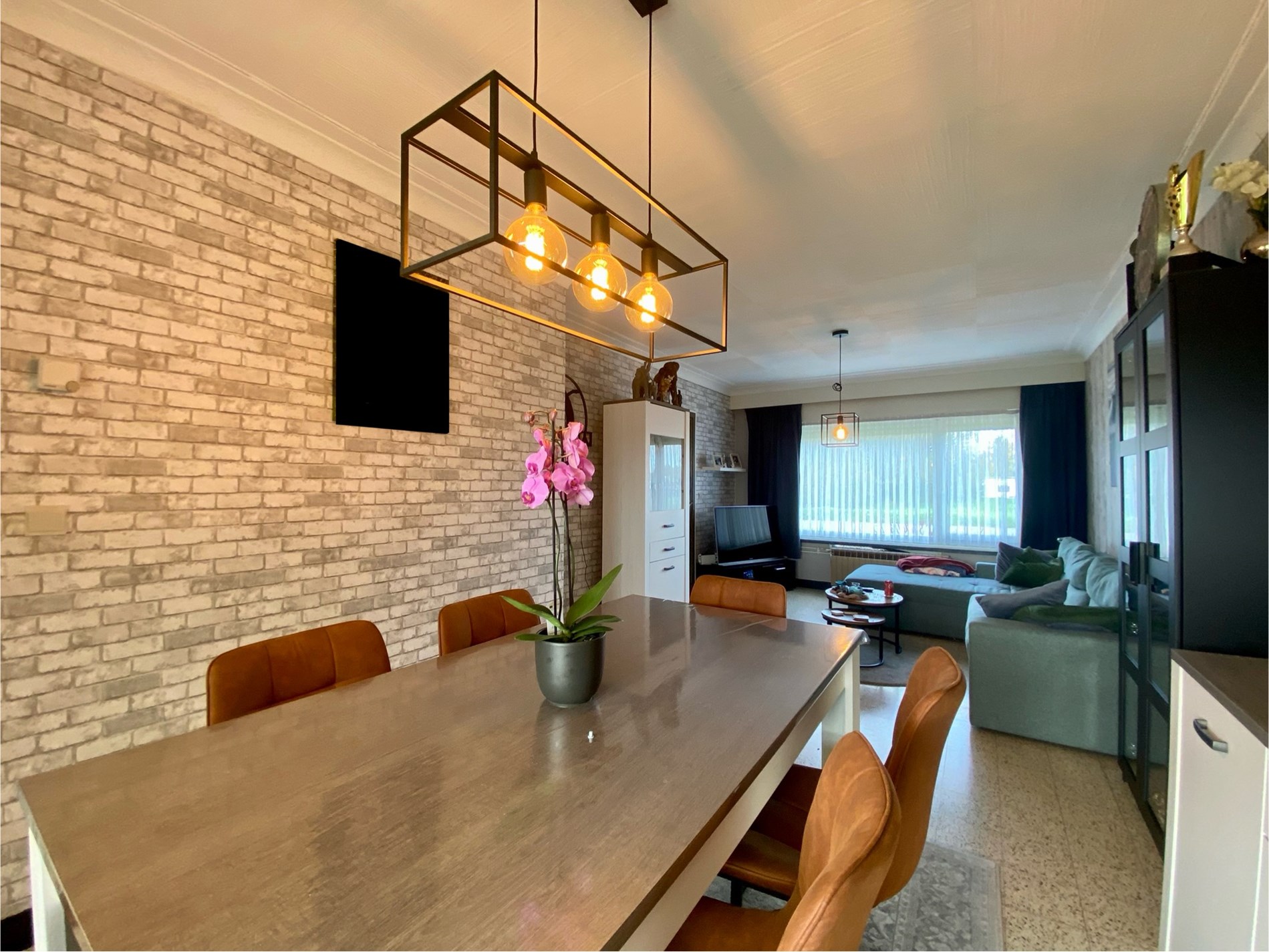 Deze fijne woning heeft een indeling als volgt: een inkomhal met gastentoilet, een lichtrijke woonkamer met zicht op de grote tuin en een ingerichte keuken (kookvuur op aardgas, dampkap en dubbele gootsteen). Via de trap naar boven zijn 2 slaapkamers, een bureau/bergruimte/hobbyruimte en een badkamer met ligbad en lavabo.