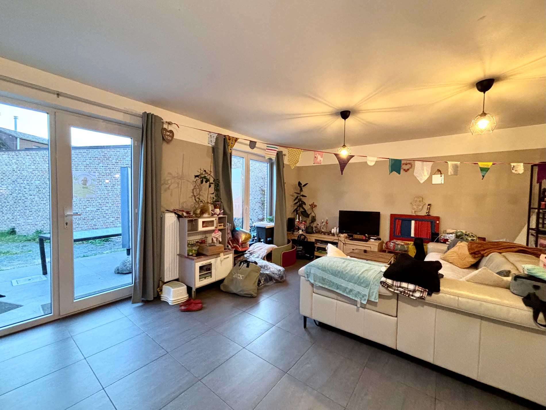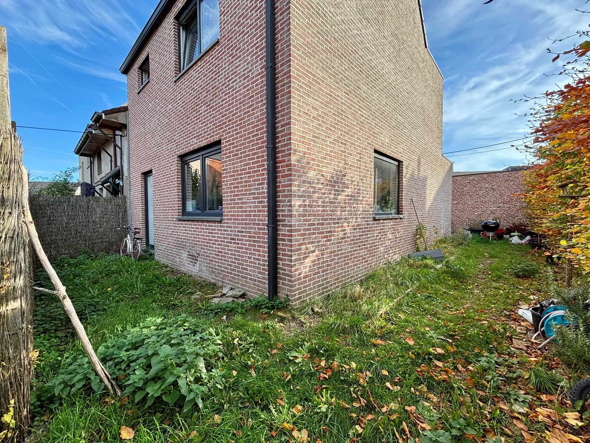 Achteraan bevindt zich een gezellig tuintje met terras, ideaal om van het zonnetje te genieten. Aansluitend is er een oprit waar plaats is voor een wagen of fietsen.