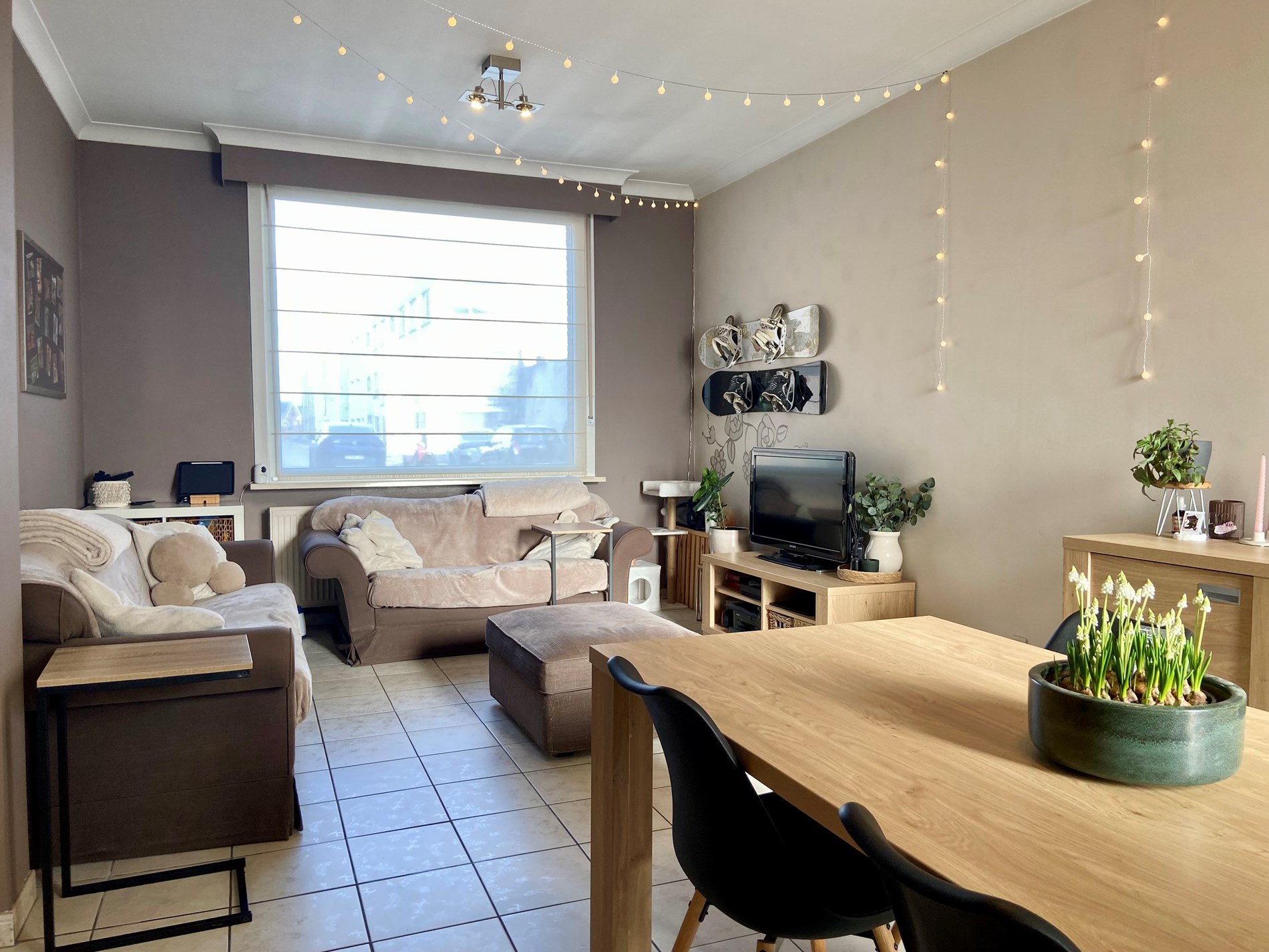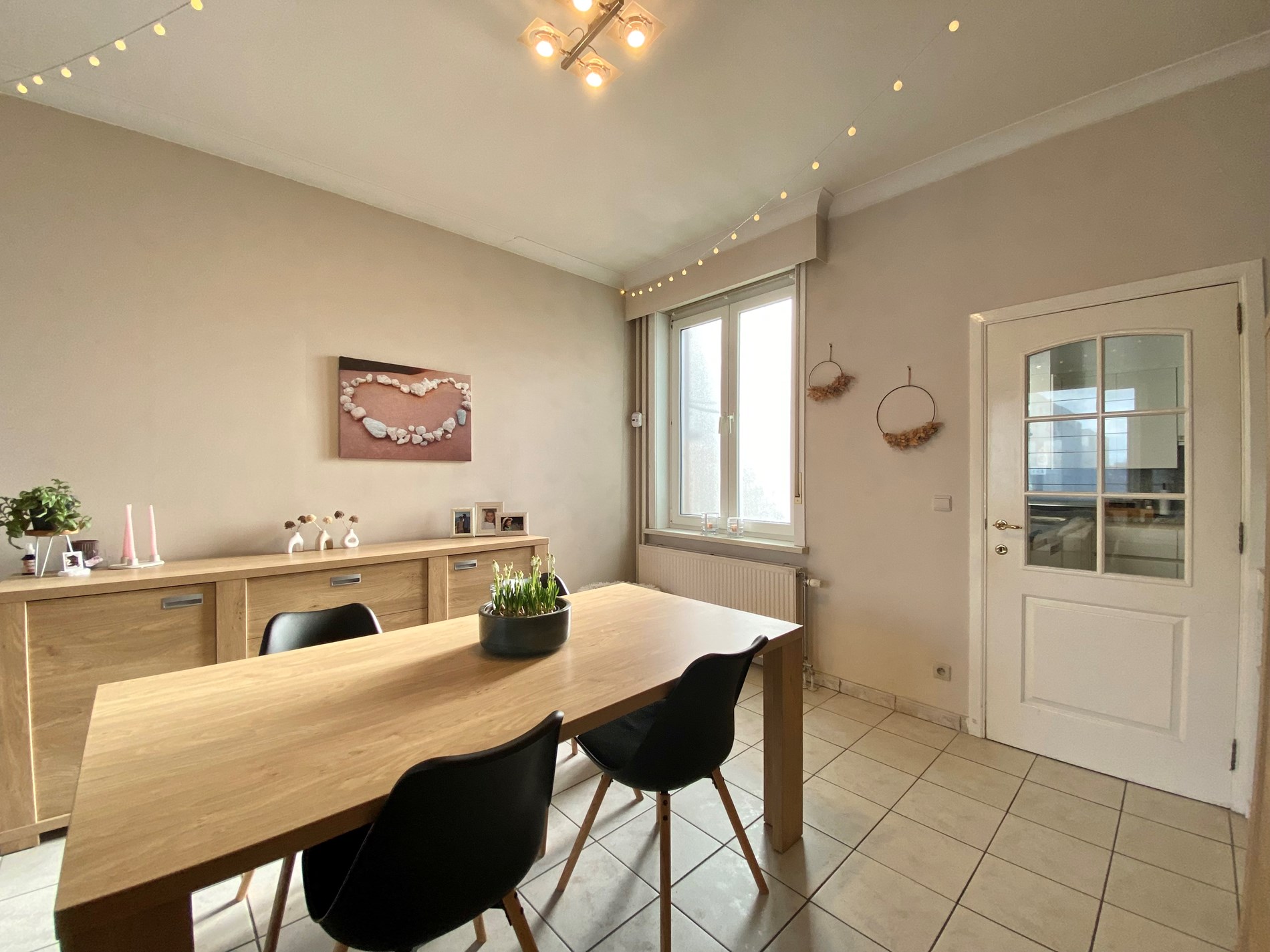Welkom in deze ruime en charmante woning, perfect voor wie op zoek is naar een comfortabele thuis. Bij binnenkomst betreed je een ruime inkomhal die toegang geeft tot de lichtrijke woonkamer. Deze sluit aan op de keuken, uitgerust met een kookvuur, dampkap, ijskast en oven. Aansluitend vind je een praktische kelder, ideaal voor extra opslag.