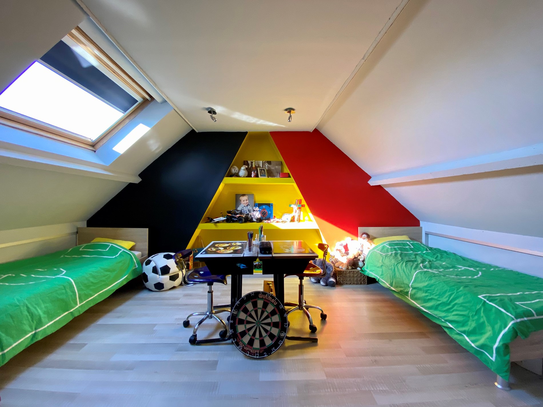 Op de tweede verdieping is een ruime derde slaapkamer met opbergruimte. Deze kamer beschikt over een nieuwe laminaat en een veluxraam met verduistering.