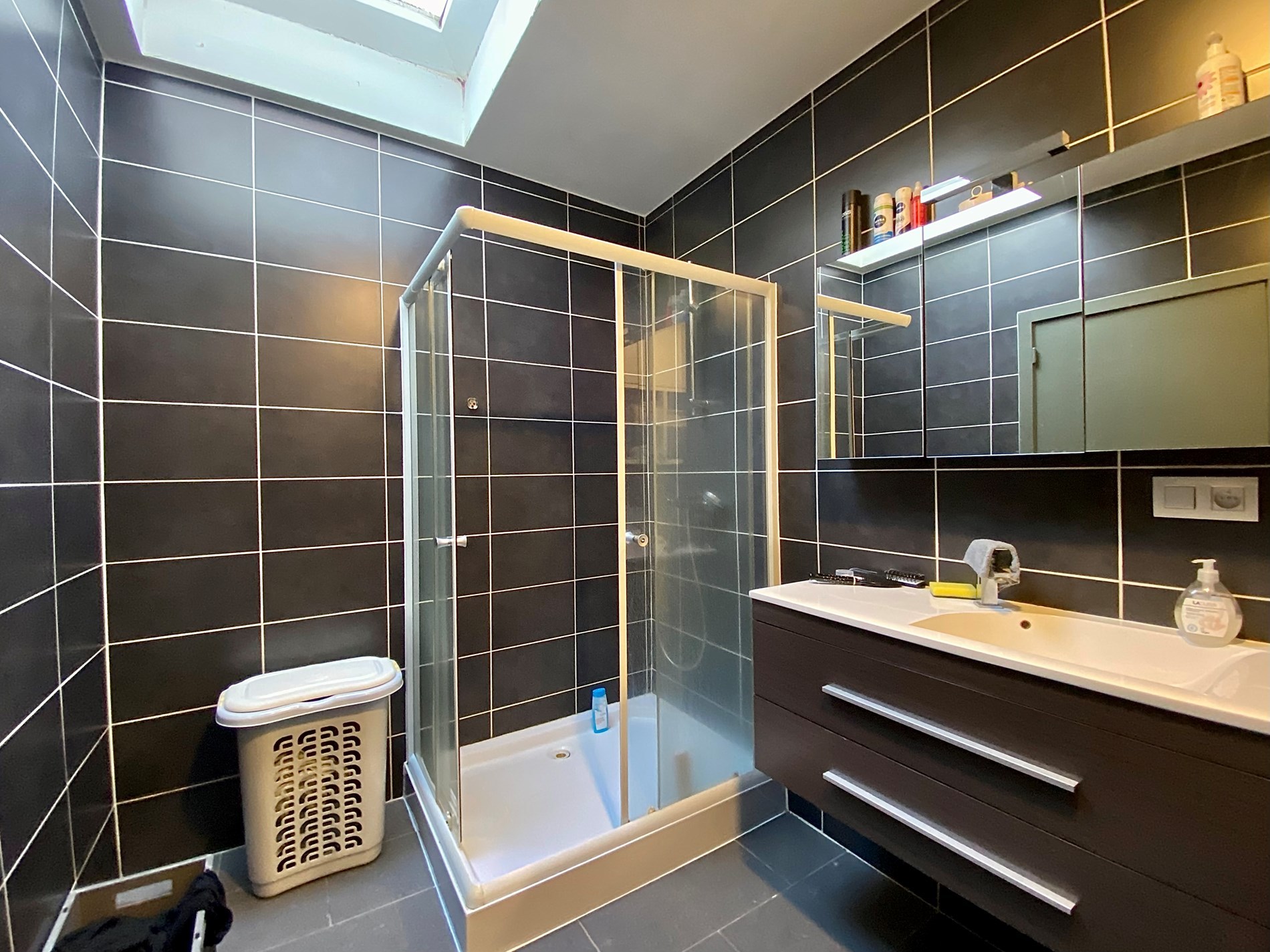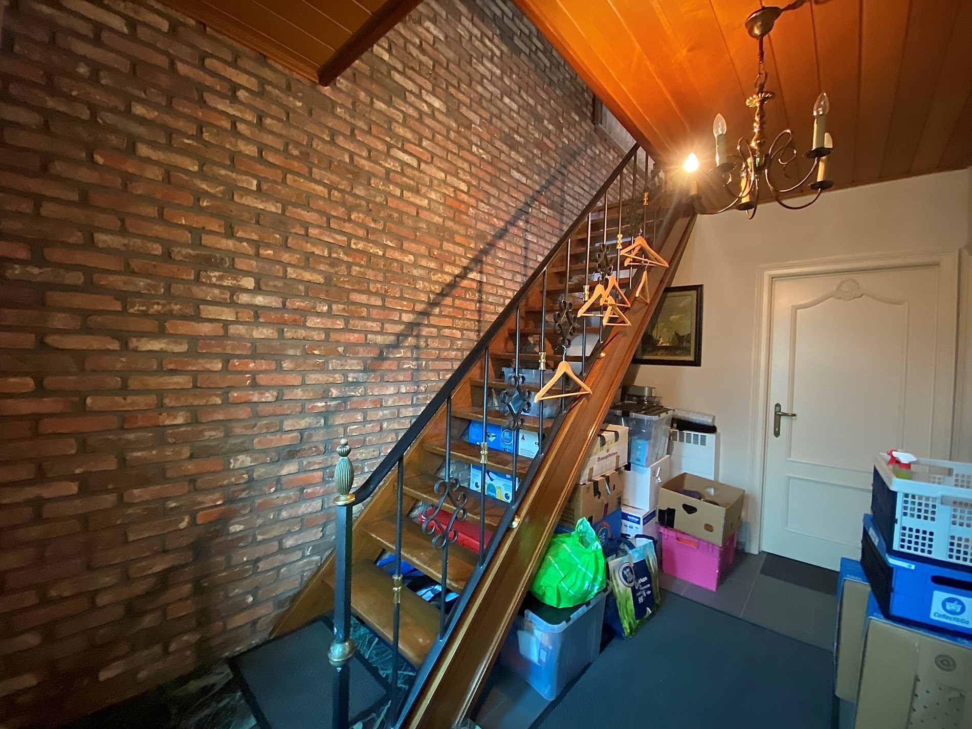 Beneden is een ruime inkomhal, deze geeft toegang tot de ruime woonkamer (met houtcassette) en ingerichte keuken. De keuken beschikt over een kookvuur, dampkap, ijskast, oven en een berging. Verder beschikt de woning over een badkamer met douchecel en wastafel, een apart toilet en een grote wasplaats met lavabo. Via de trap naar boven zijn 3 grote slaapkamers (1 met ingebouwde kast/berging).