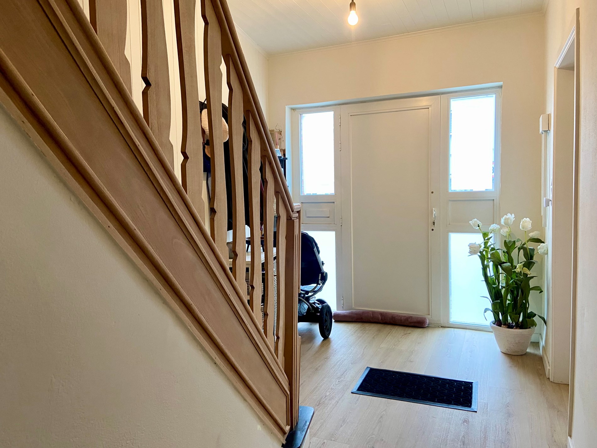Bij binnenkomst word je verwelkomd in een ruime inkomhal met tal van ingebouwde kasten, ideaal voor het opbergen van jassen en schoenen.