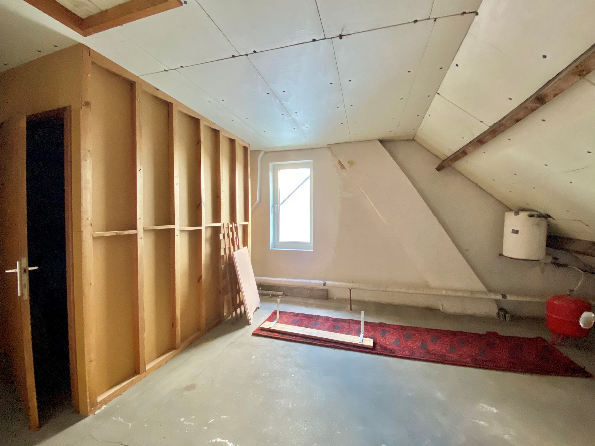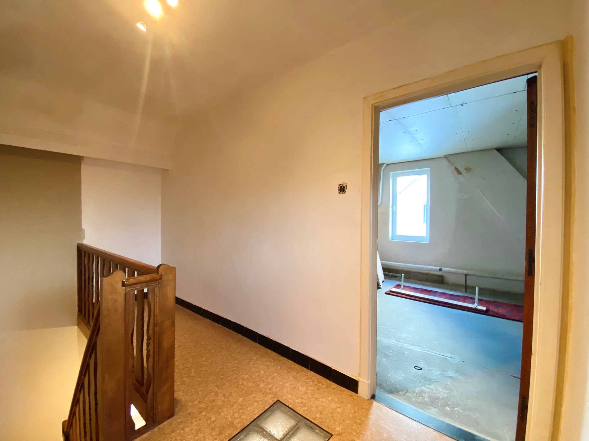 Op de eerste verdieping vind je drie ruime slaapkamers en een kleine maar praktische badkamer met lavabo, toilet en bad. Via de tweede trap bereik je een grote opbergruimte, ideaal voor extra opslag. Bovendien is er een zolderluik dat toegang geeft tot de zolder.
