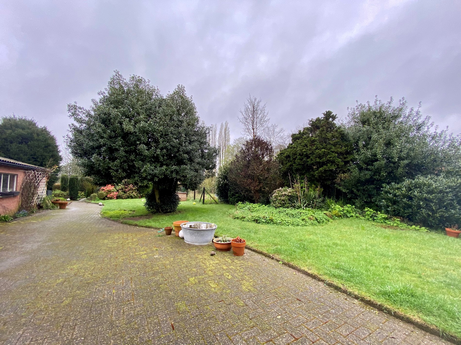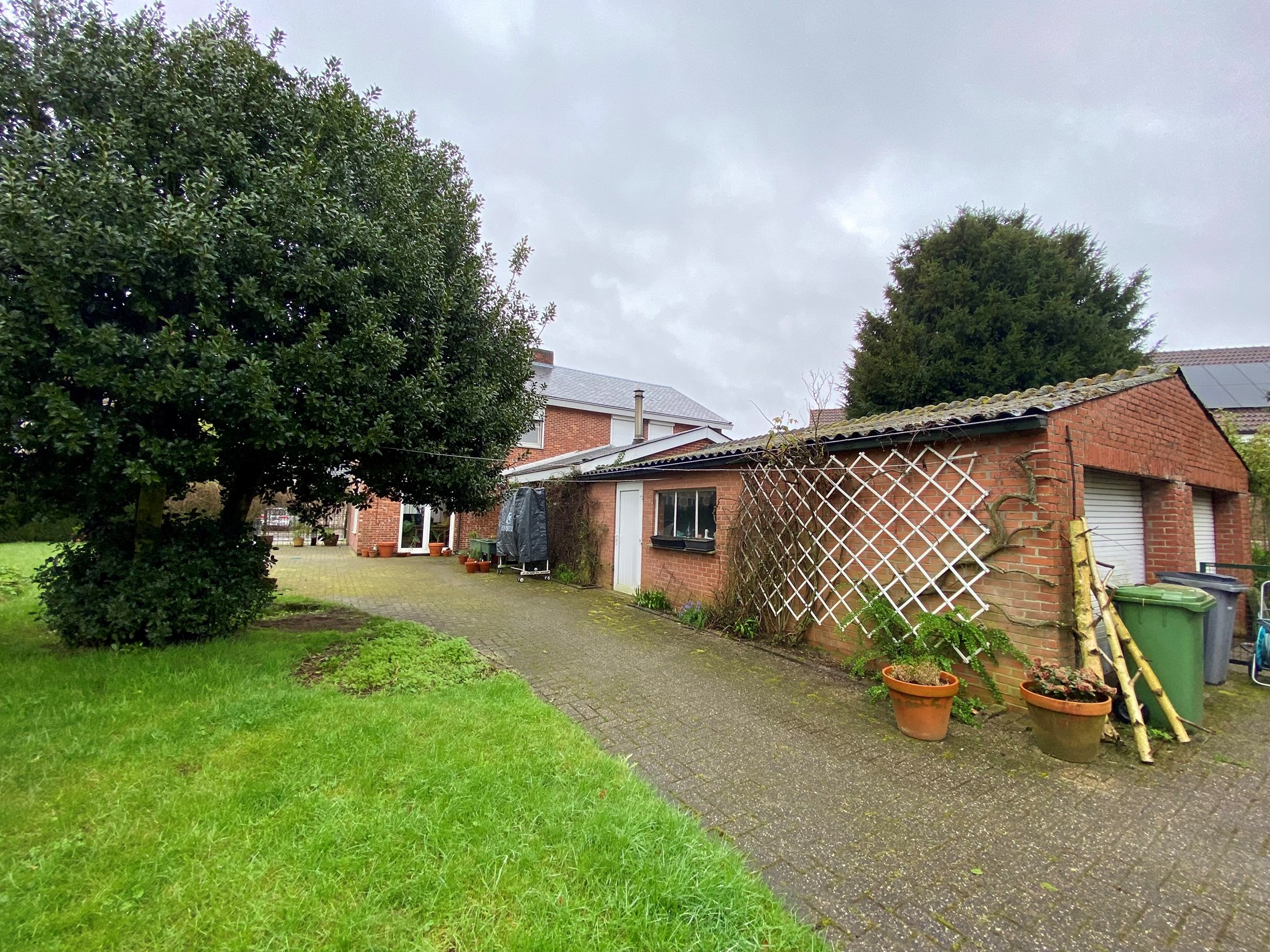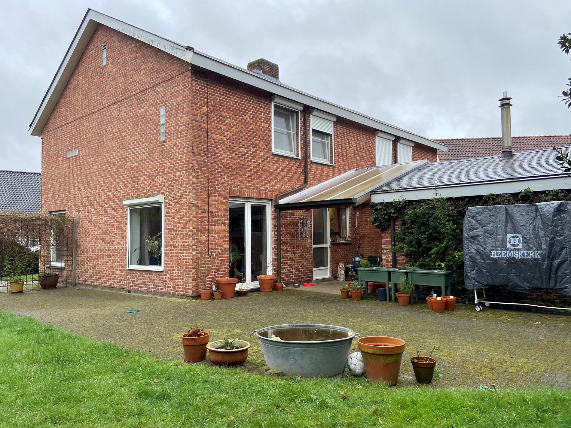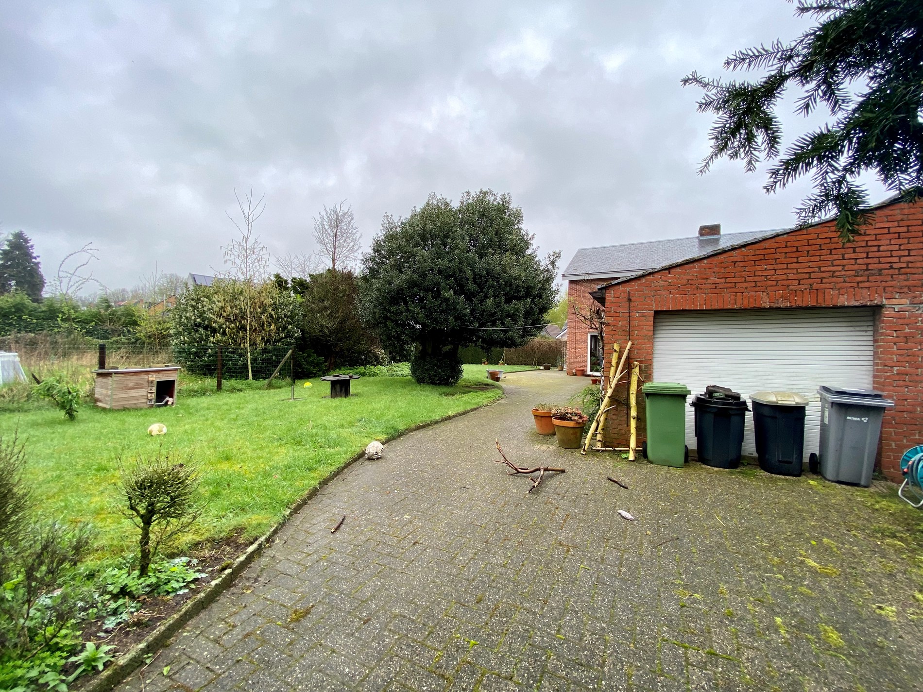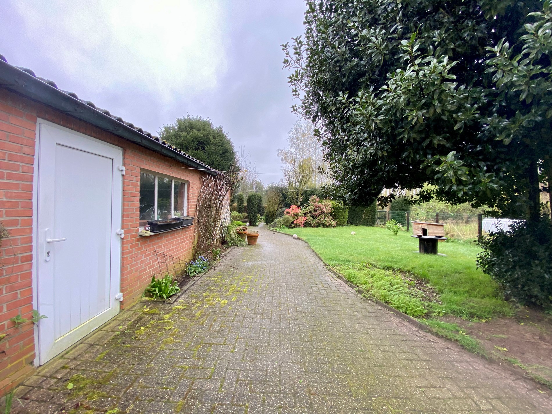 De tuin is volledig afgesloten en heeft een poort vooraan de woning.