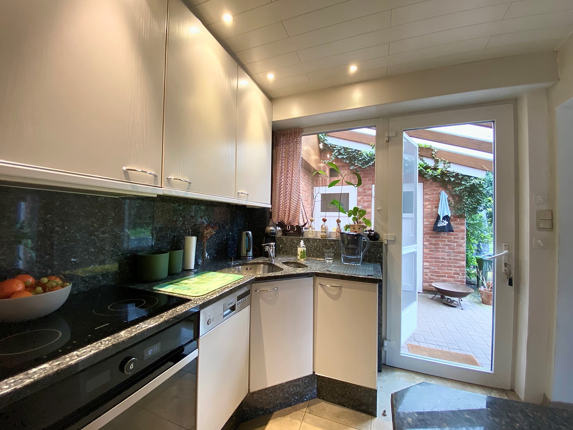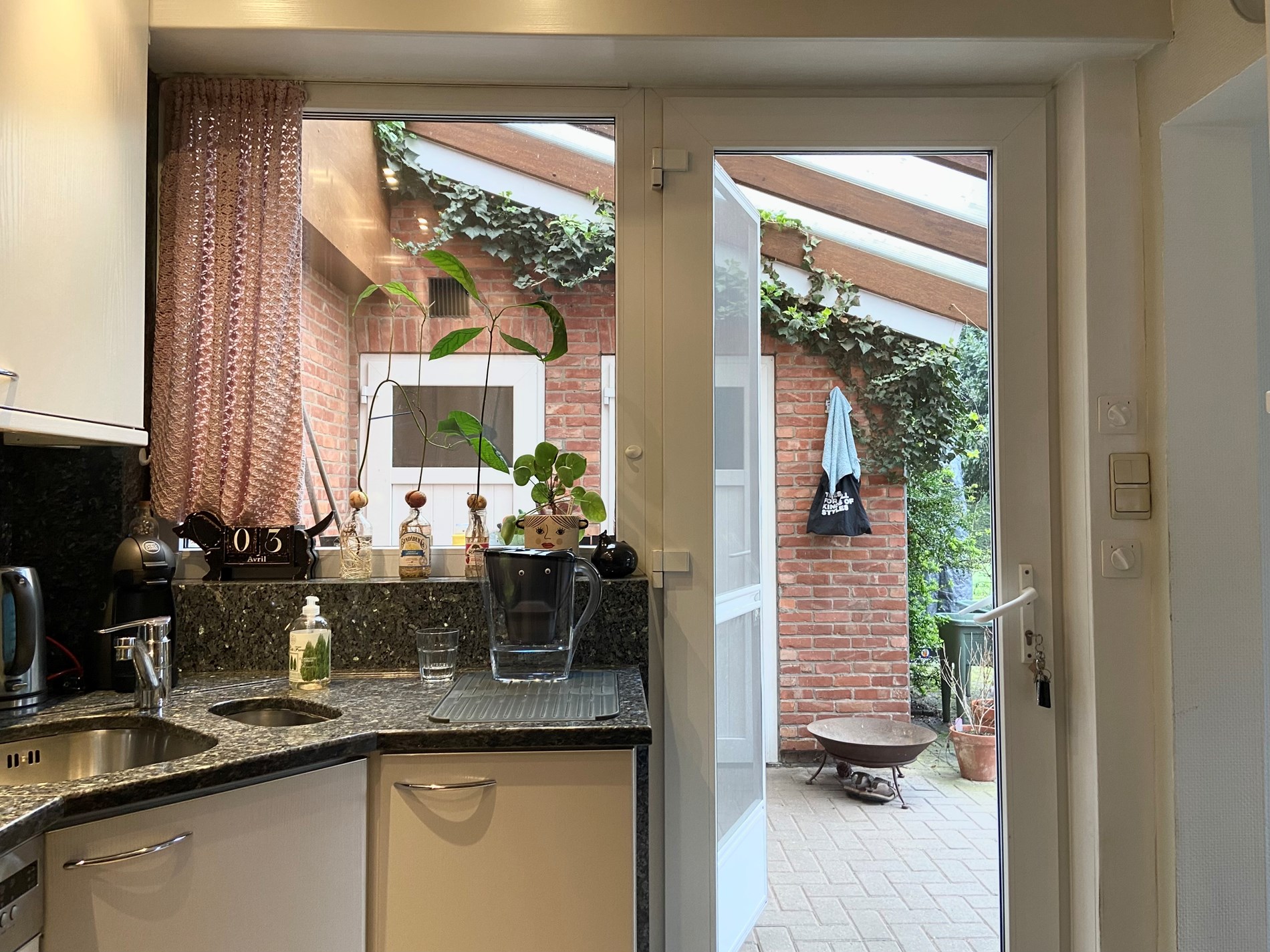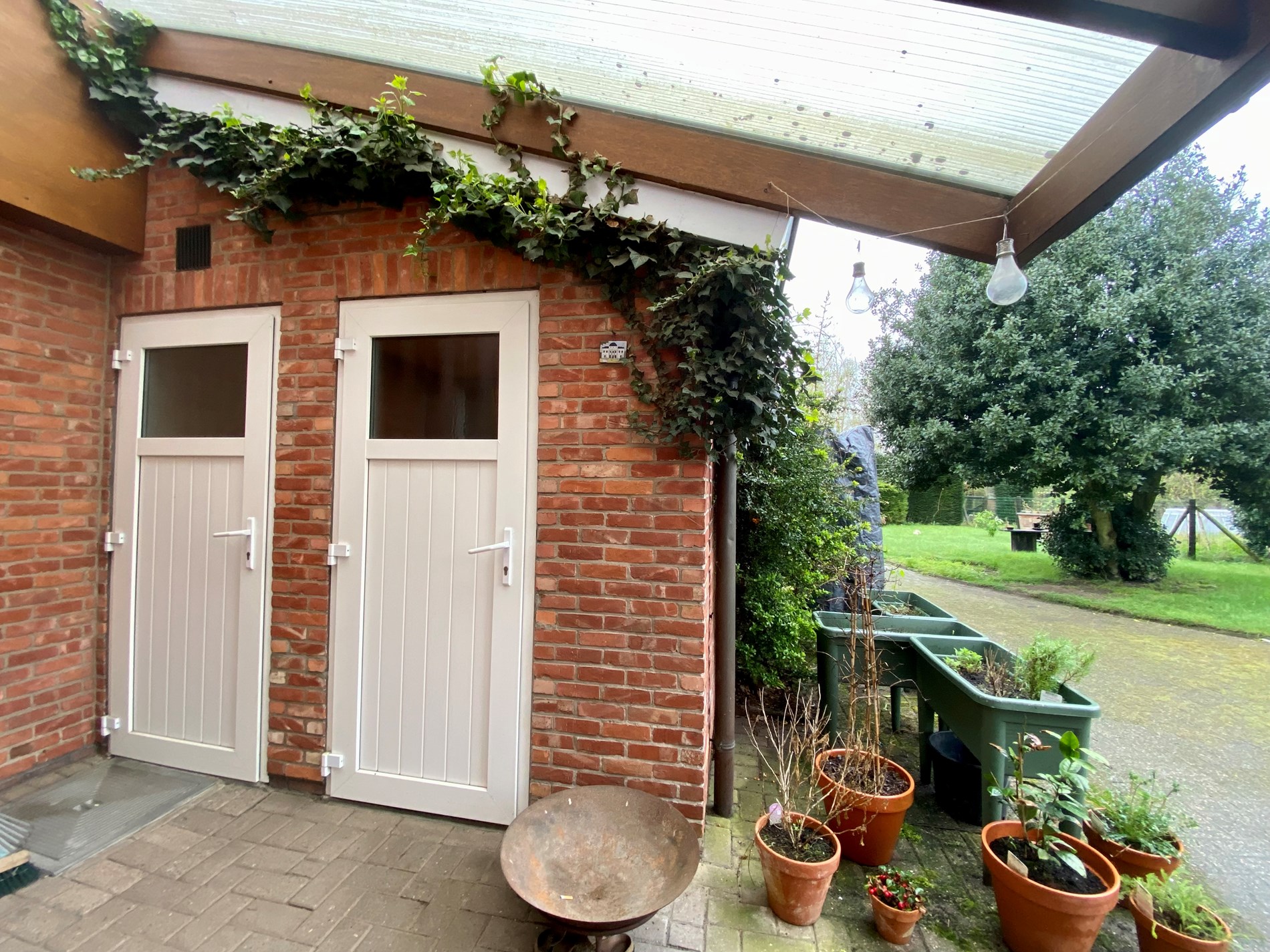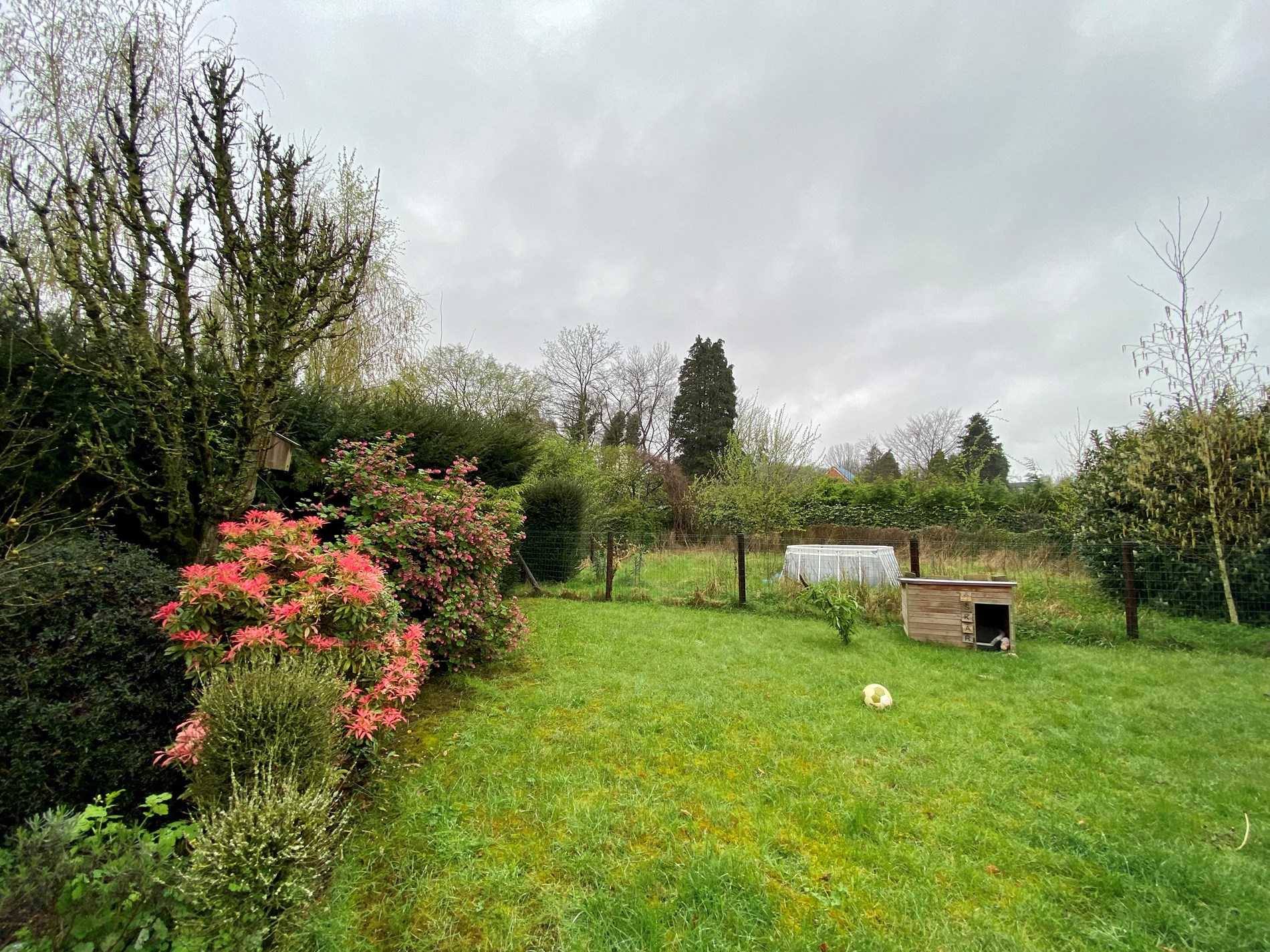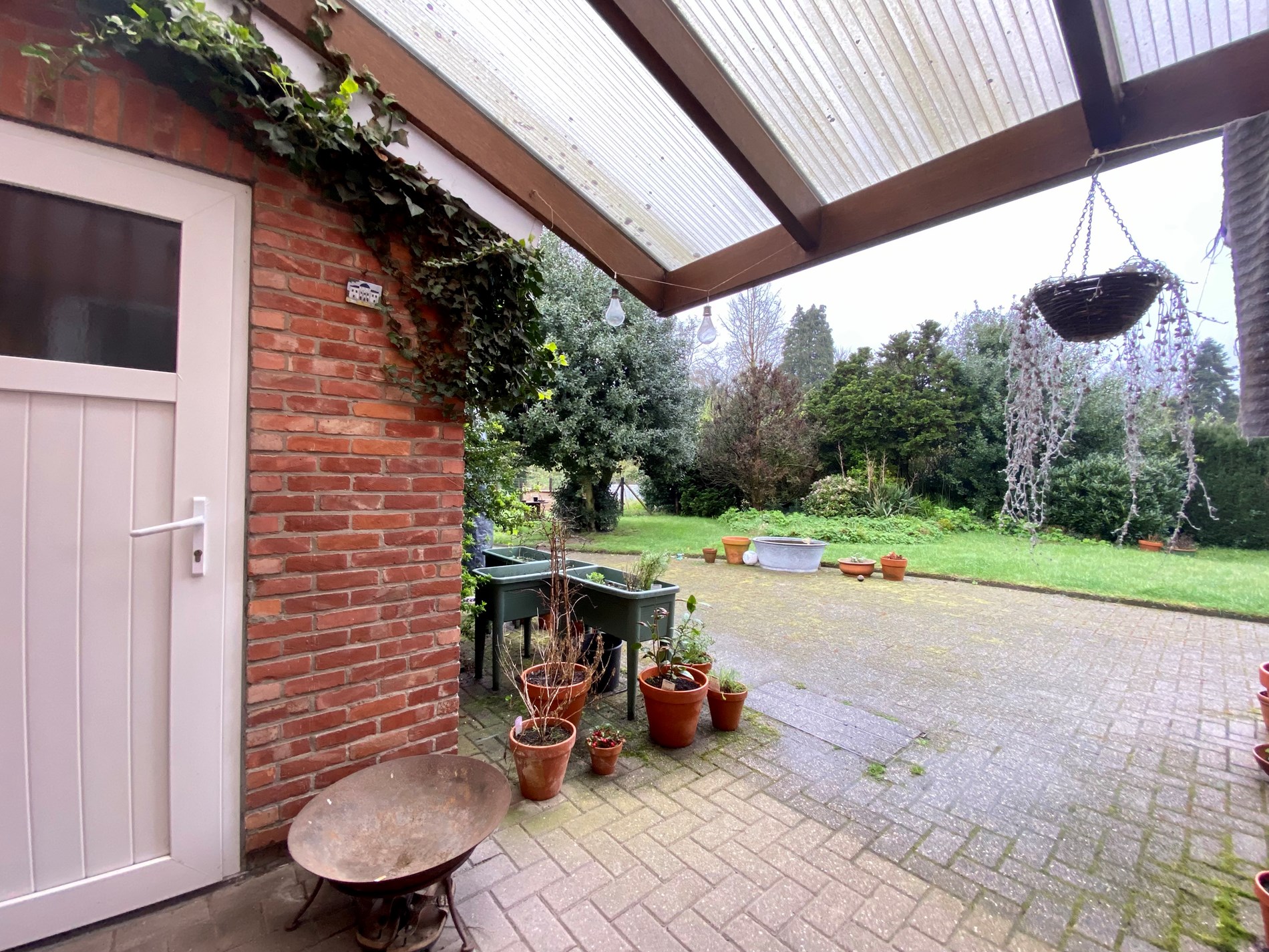De tuin is volledig afgesloten en heeft een poort vooraan de woning.