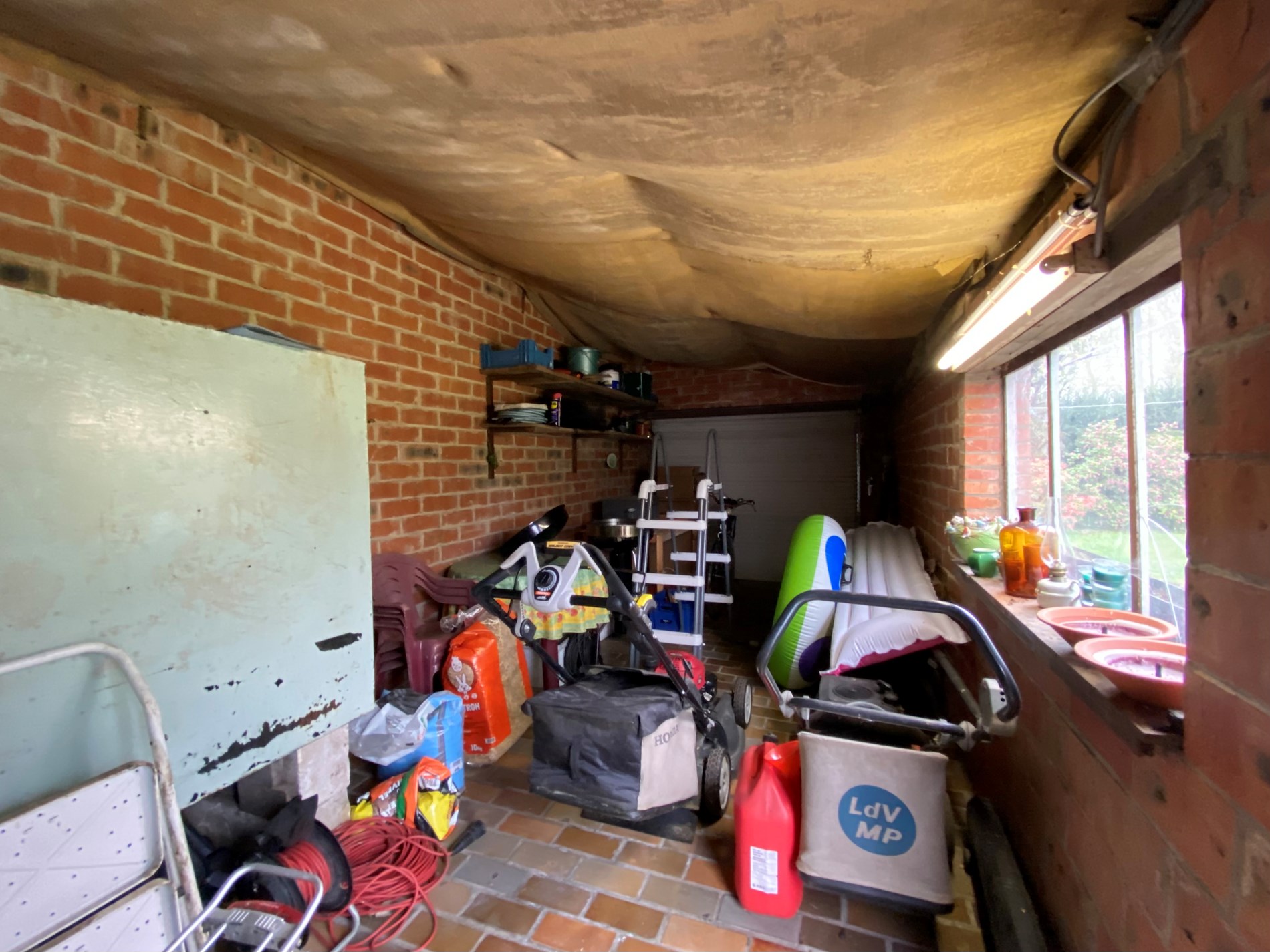 Via de achterdeur naar buiten kom je in de zeer ruime tuin, hier is ook een grote achterbouw aanwezig met een bergruimte, toilet en garage.