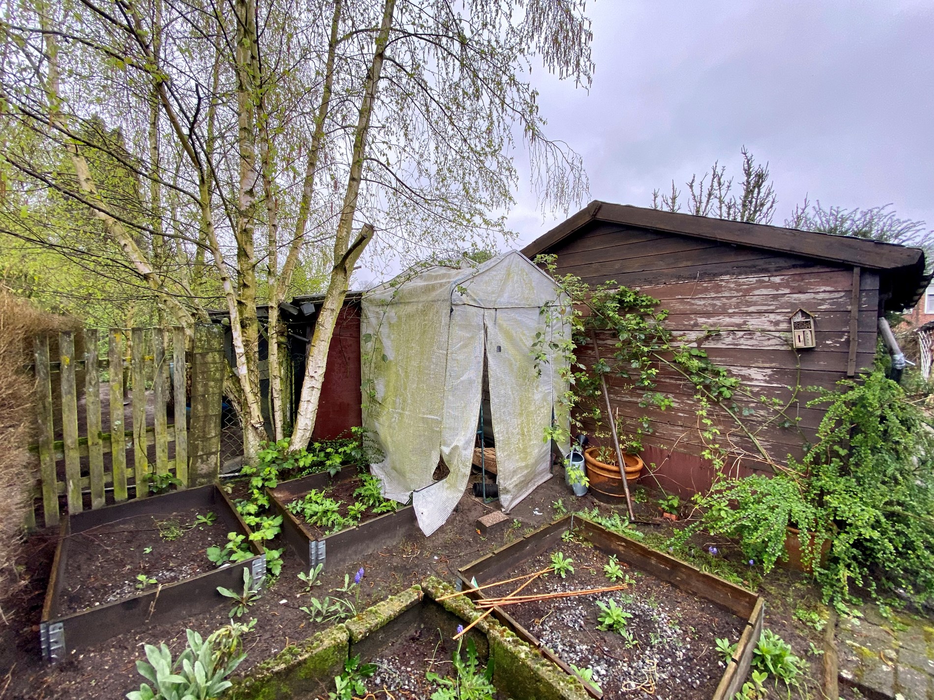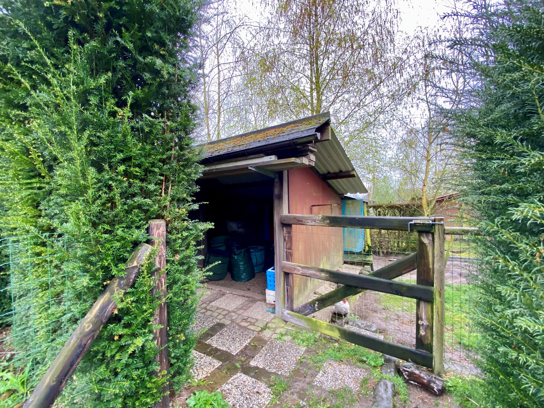 Verder beschikt de tuin over een tuinhuis en kippenhok.
